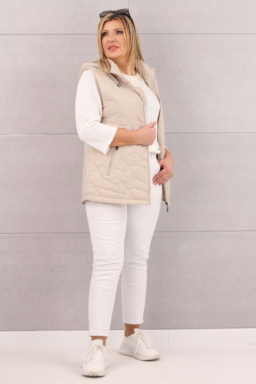 Наш стеганый жилет – незаменимый предмет гардероба в переходный период между сезонами. Идеально сочетает в себе стиль и функциональность. Длина до бедра облегчает ношение и идеально сочетается с различными стилями. Этот жилет с капюшоном и практичными карманами не только обеспечит вам комфорт каждый день. Вы можете носить его на прогулку или на работу, внеся тонкий акцент в свой повседневный образ.
