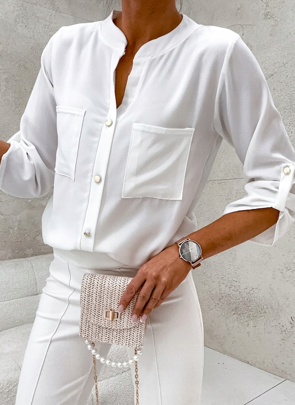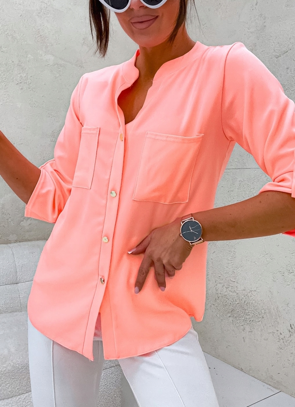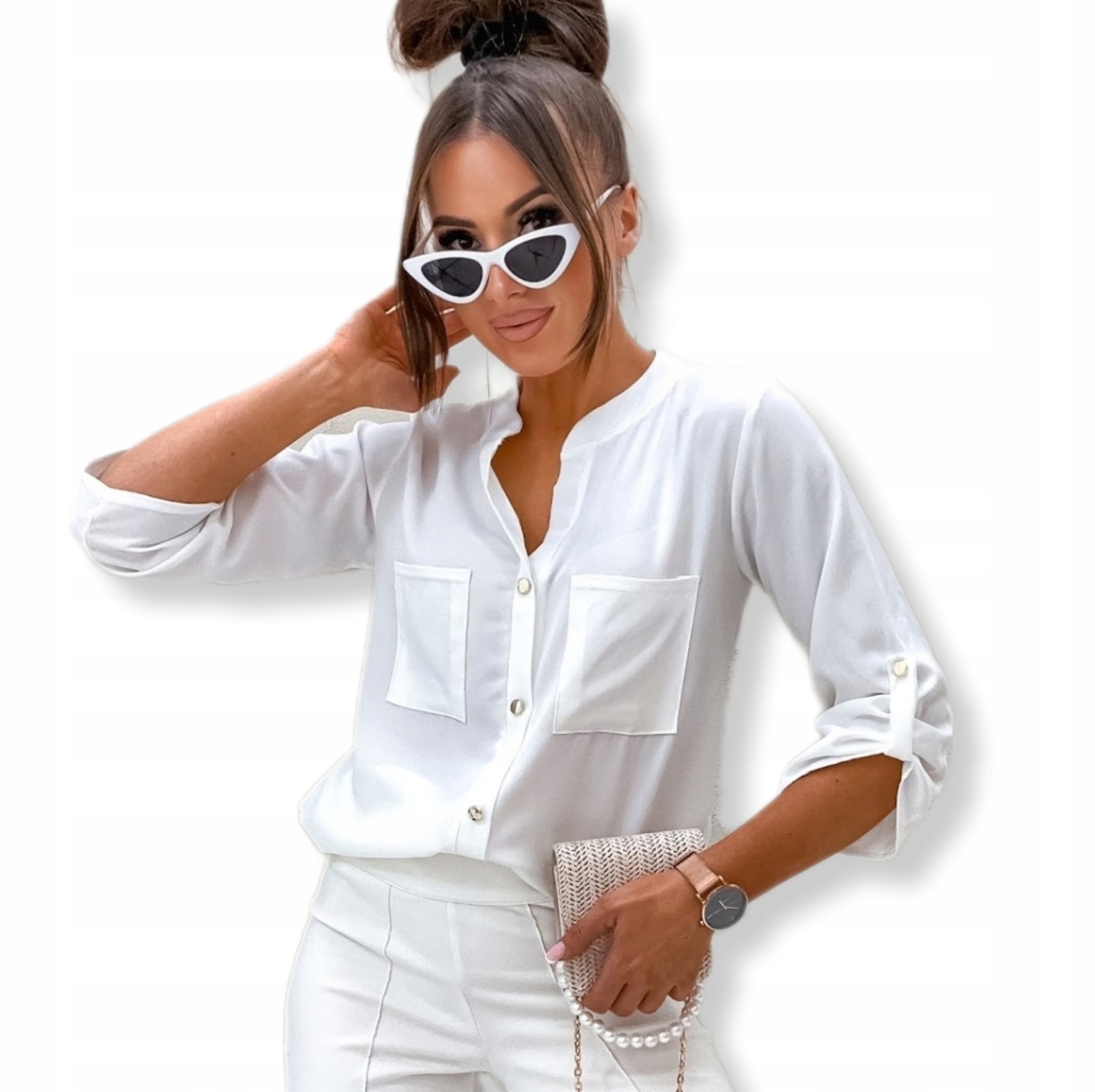 Классическая элегантная блузка с декоративными пуговицами спереди, на рукавах и карманах изделие красивых цветов отлично подойдет для многих повседневных и случайных стилей. Изделие имеет круглый вырез горловины и непременно подойдет к джинсам, брюкам-сигаретам или юбке-карандаш. Это определенно лучшая полка в категории блузок от польского производителя, который шьет с вниманием к мельчайшим деталям. Польский продукт.