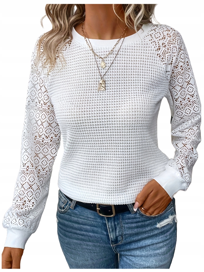 ЛЕГАНТНАЯ ЖЕНСКАЯ БЛУЗКА С ДЛИННЫМИ РУКАВАМИ, КРУЖЕВО, АЖУРНЫЙ ВЕЧЕРНИЙ М