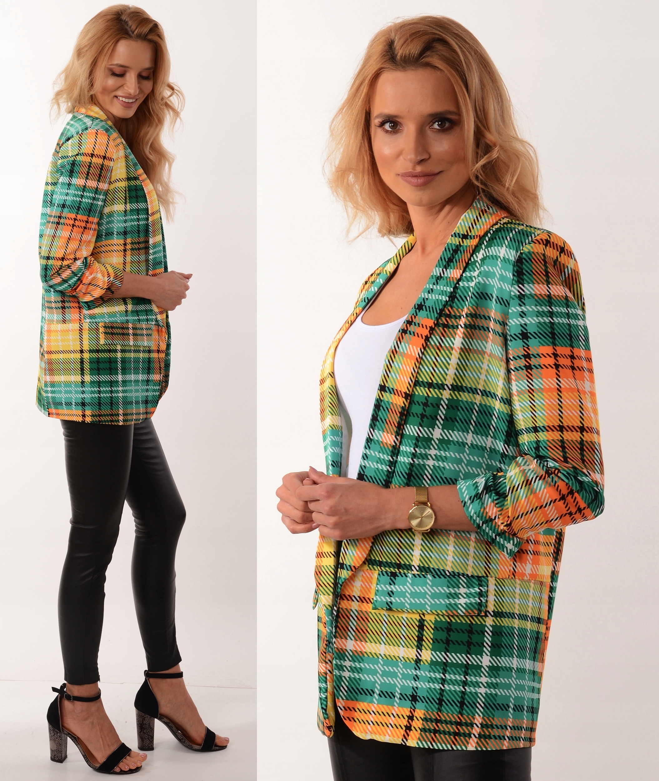 Уникальный модный свободный жакет с оригинальным ярким рисунком в клетку.