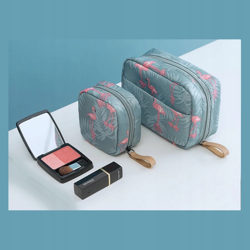 Жіноча косметичка: набір з двох м'яких дорожніх сумок, ручка з екошкіри Flamingo