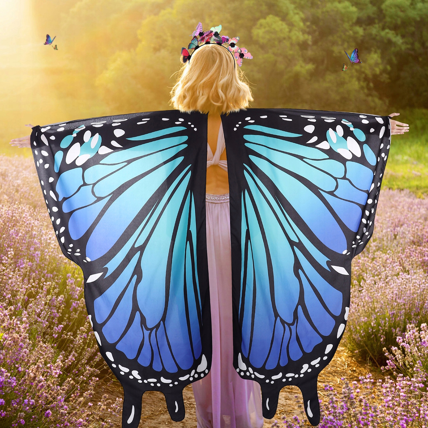 ✅ Супер ценность костюма для вечеринки с играми в Halloween Butterfly Wings Cape, включая бонусную черную бархатную повязку с антенной.