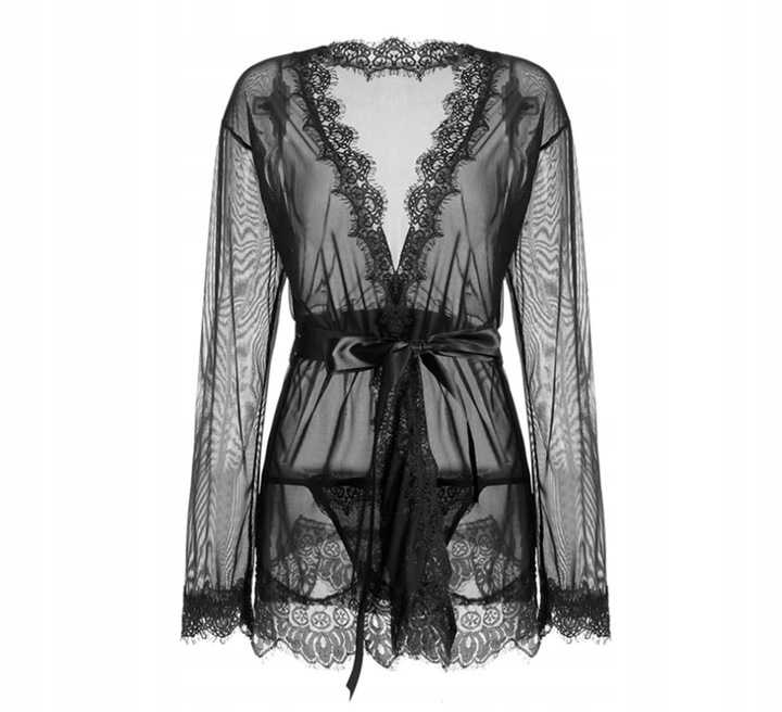 Жіноча нижня білизна Чорний халат + стрінги мереживні