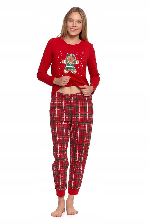 ЖЕНСКАЯ РОЖДЕСТВЕНСКАЯ ПИЖАМА MORAJ С ДЛИННЫМ РУКАВОМ ХЛОПКОВЫЙ КРАСНЫЙ ПРЯНИК XXL