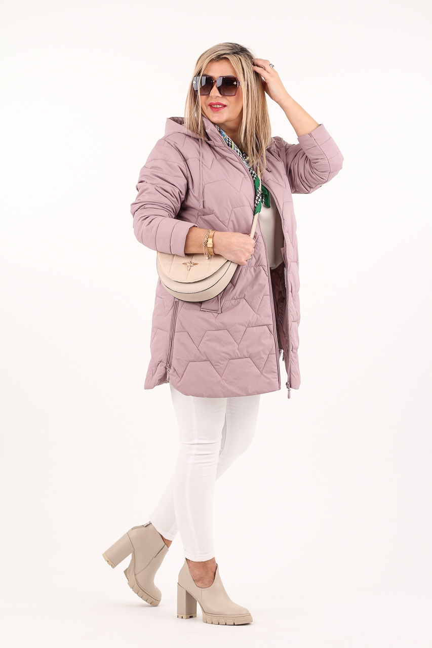 Женская стеганая куртка с переходом с капюшоном большие размеры замки по бокам