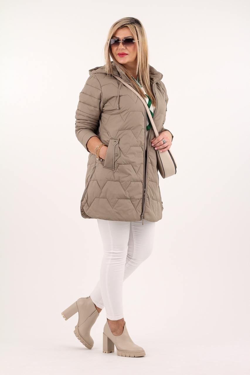 Женская стеганая куртка с переходом с капюшоном большие размеры замки по бокам