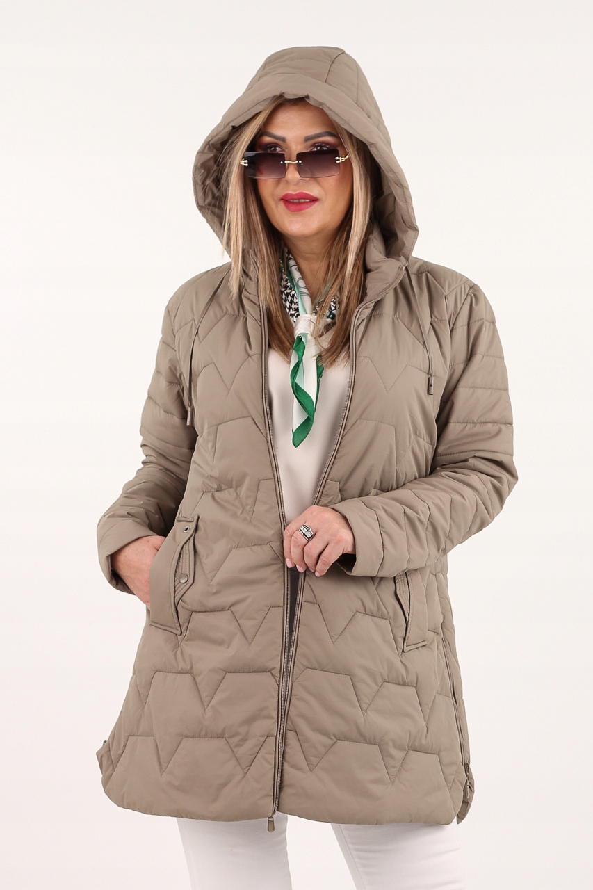Женская стеганая куртка с переходом с капюшоном большие размеры замки по бокам