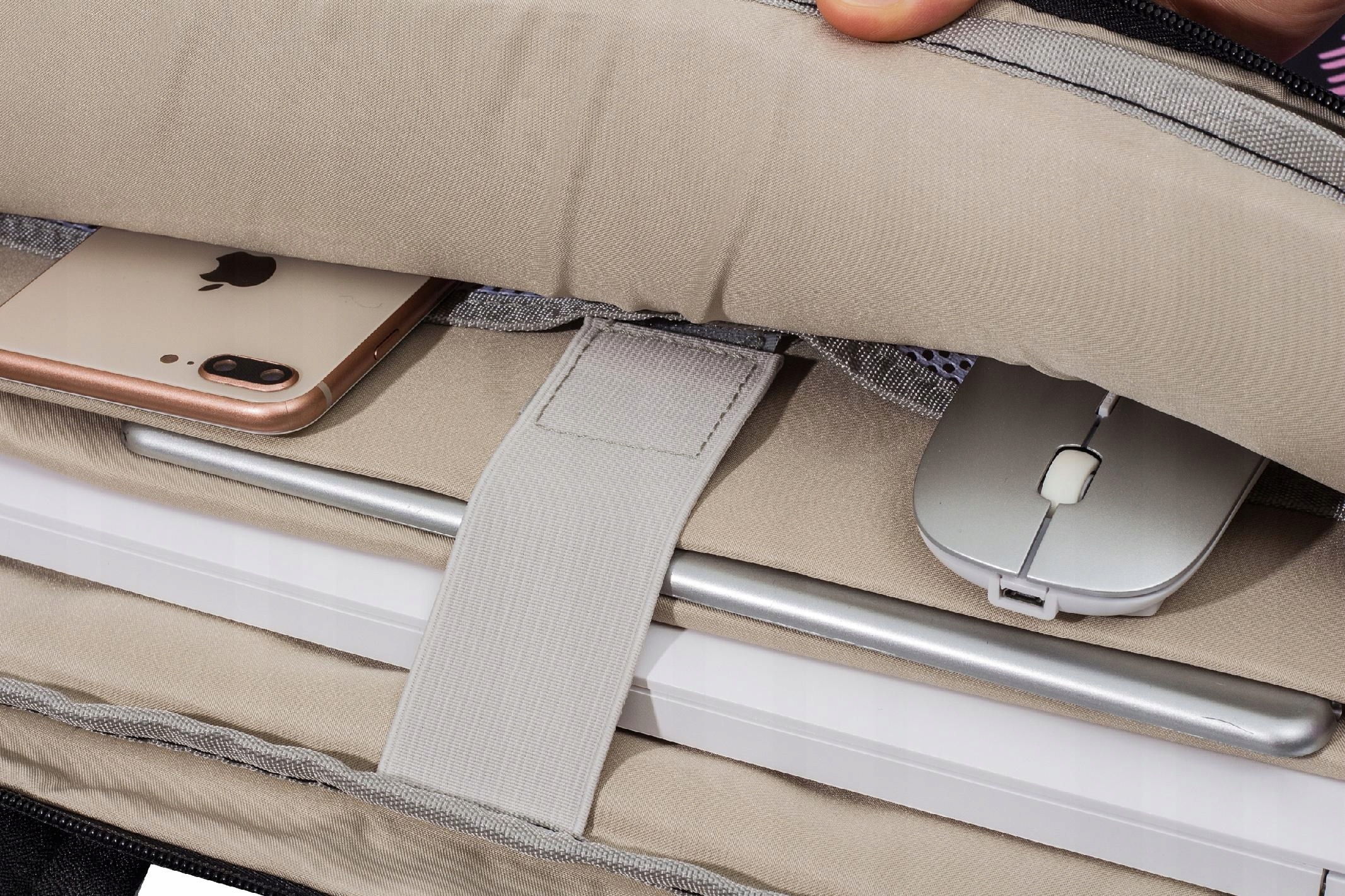 Корпус был оснащен удобными ручками и плечевым ремнем. Он имеет ноутбук и два дополнительных боковых кармана, закрытых с помощью молнии