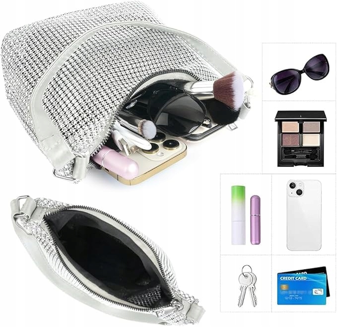 Добавьте блеска своему стилю с помощью этой уникальной сумки! Идеально подходит для элегантных вечеринок, свадеб, свиданий или вечерних выходов — эта блестящая сумочка с кристаллами обязательно должна быть в гардеробе каждой женщины.