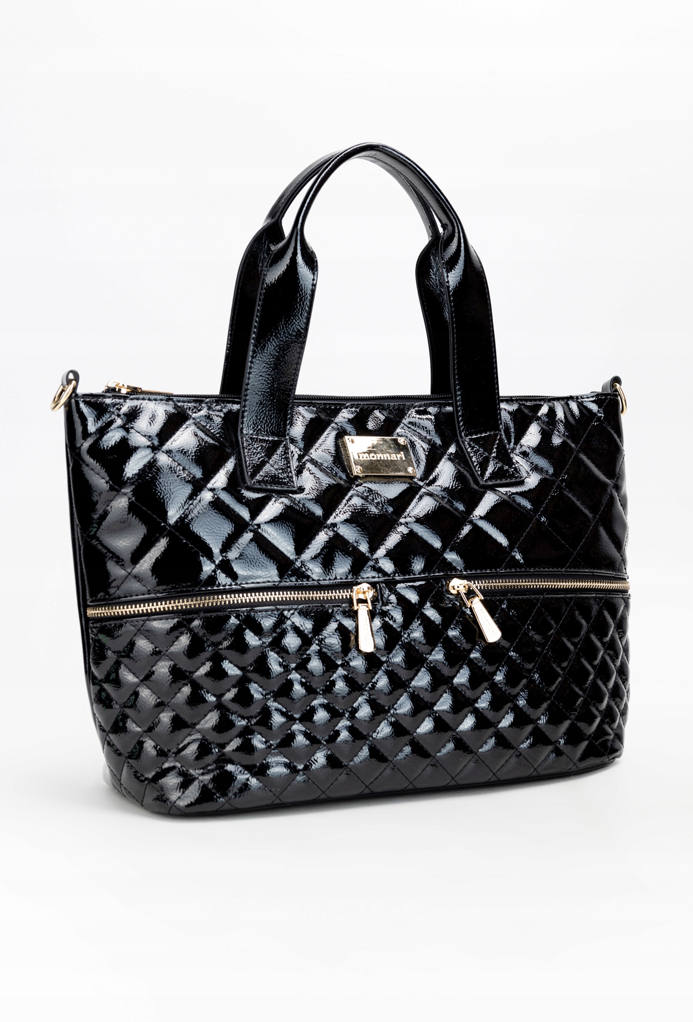ЖІНОЧА СУМКА-ШОППЕР MONNARI , ЧОРНА, ВЕЛИКА, СТЕГАНИЙ ЛОГОТИП, ШКІРА