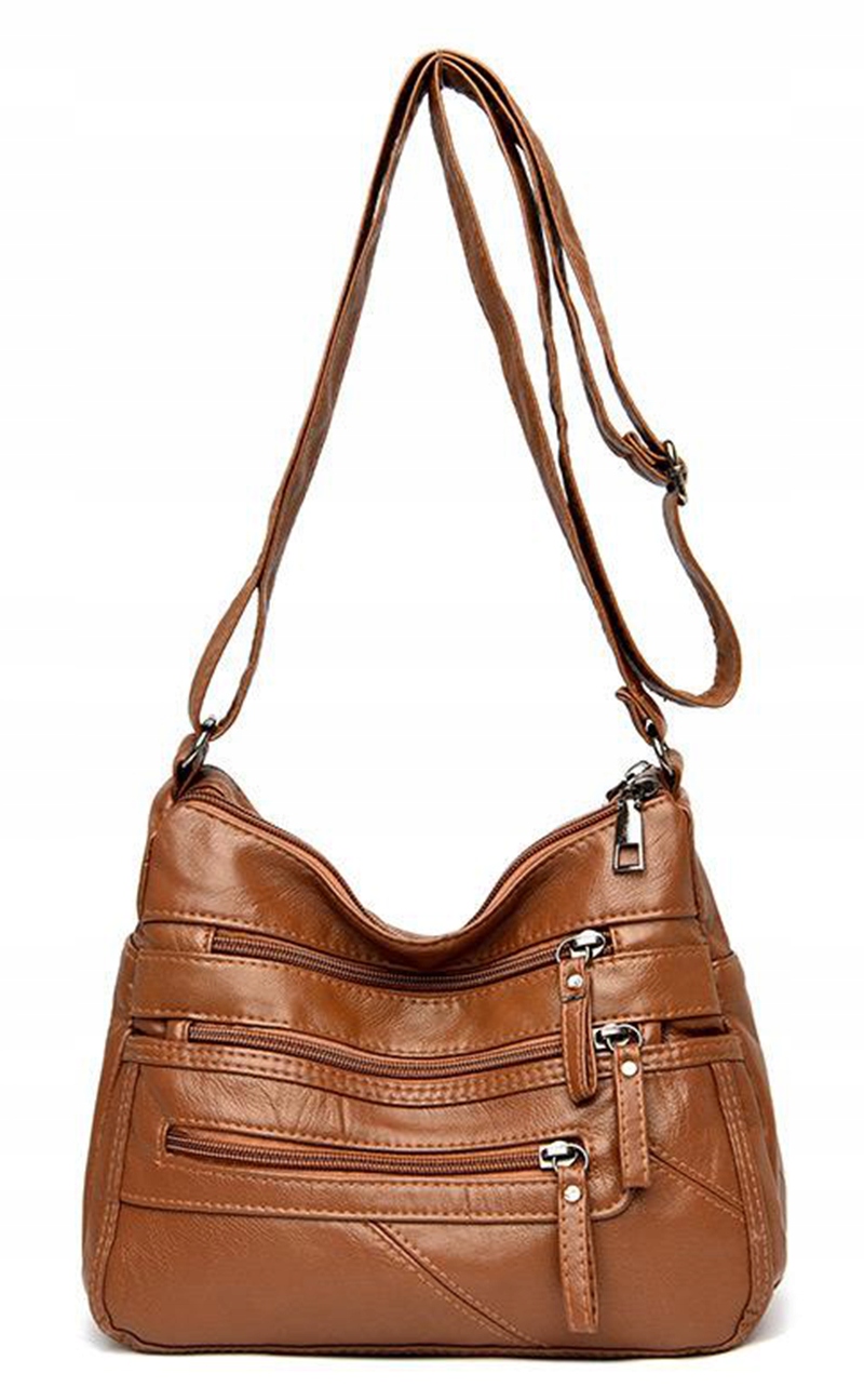СУМКА ЖЕНСКАЯ НА МОЛНИИ, КОРИЧНЕВАЯ ЭКО КОЖА, МУЛЬТИЗАРЯДНОЕ УСТРОЙСТВО