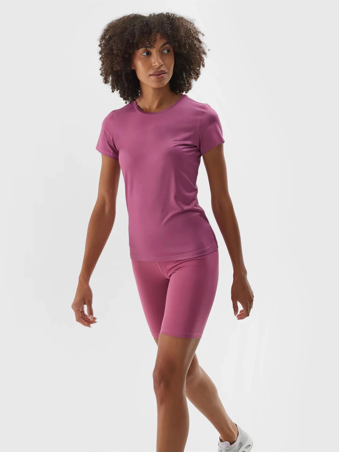 4f Женская рубашка из тренировочной линии гарантирует комфорт и поддержку, которые имеют решающее значение во время различных тренировок. Изготовленная из быстрых гибких материалов, он обеспечивает полную свободу движения, что приводит к максимальному комфорту и фокусированию. Приспособленный резак и гладкий материал обеспечивают идеальную адгезию к телу, не ограничивая движения. Дополнительным преимуществом является круглый вырез и короткий рукав, а логотип, расположенный на передней части T -рубашек, добавляет стиль.