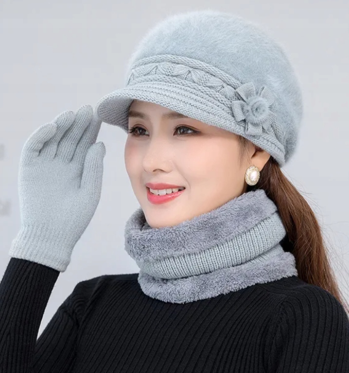 ЖІНОЧА ТЕПЛА ШАПКА + ЗИМОВА СПІДНИЦЯ, СІРА