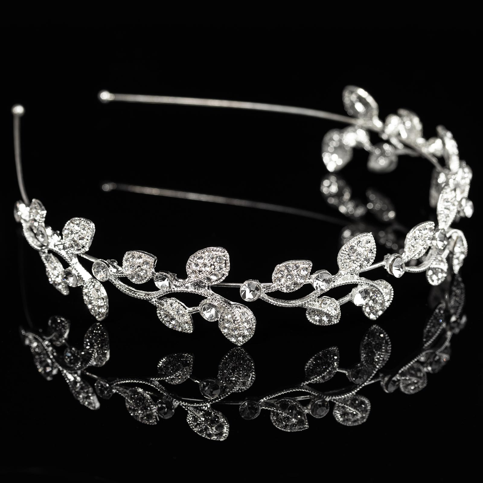 Женская свадебная ОБОДКА ДЛЯ ВОЛОС ЛИСТЬЯ, серебро, ЦИРКОНИЙ свадебная