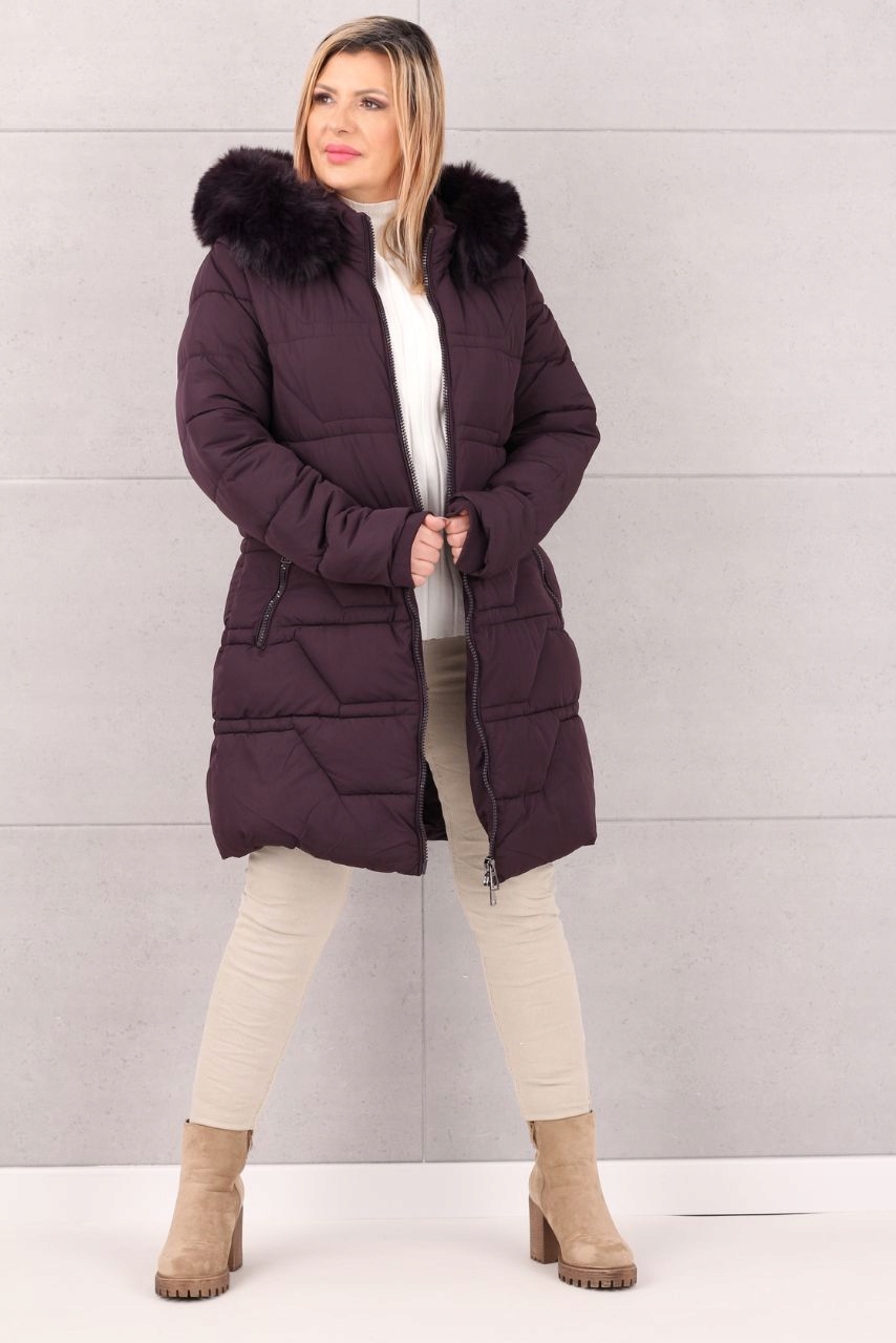 ЖІНОЧА ЗИМОВА СТЬГАНА УТЕПЛЕНА КУРТКА З ХУТРЯНИМ ЗНІМНИМ КАПЮШОНОМ 42-52