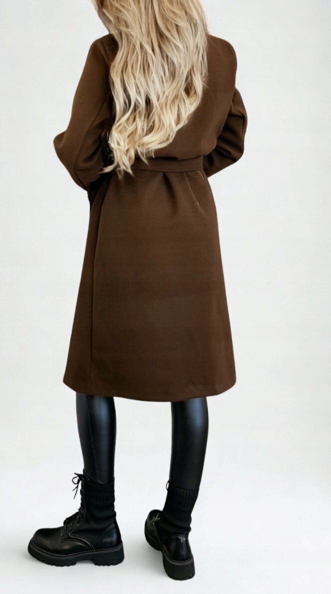 ПАЛЬТО ЖЕНСКОЕ ОСЕННЕ-ЗИМНЕЕ ПАЛЬТО С ДЛИННОЙ РЕЗИНКОЙ НА ПУГОВИЦАХ, подкладка КОРИЧНЕВАЯ