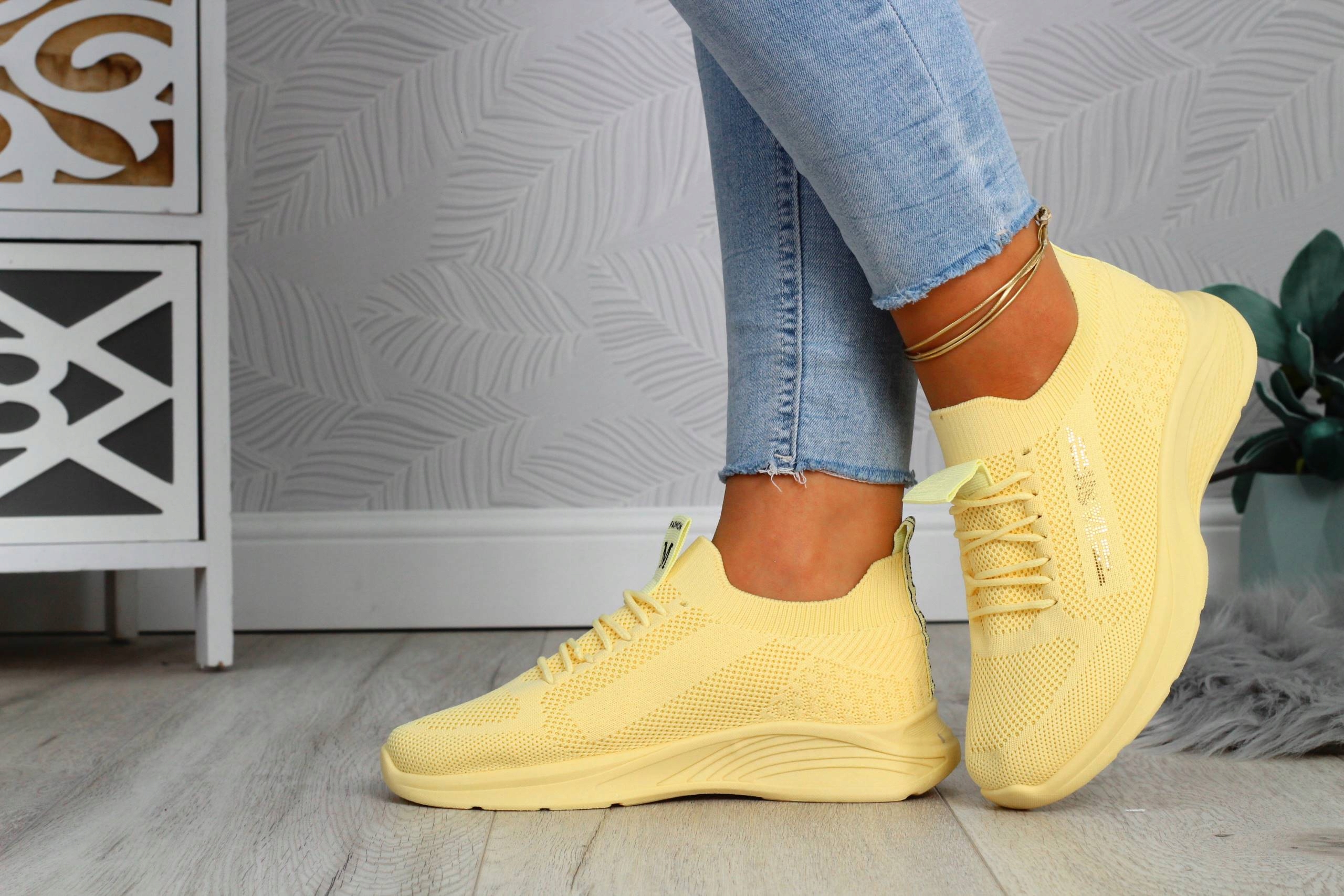 Женские спортивные слипоны желтого цвета из воздушной сетки. Изготовлен из материалов хорошего качества. Они подойдут как повседневная, так и спортивная обувь. Они легкие и обеспечивают удобство и комфорт использования. Подошва устойчивая и хорошо амортизирует ногу. Ребристая отделка, эластичный материал.
