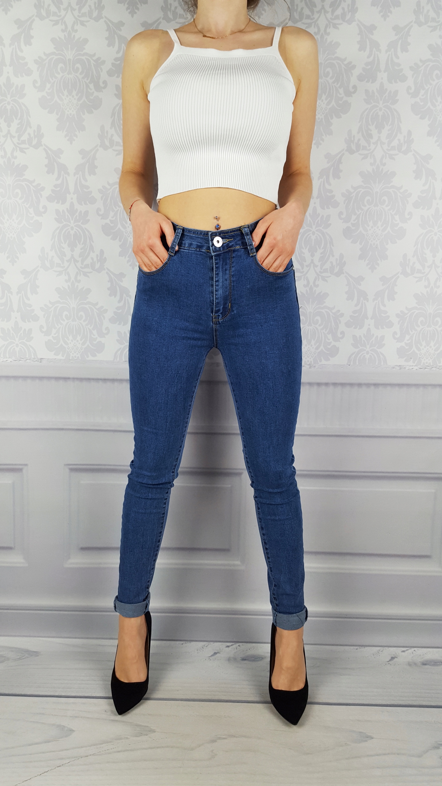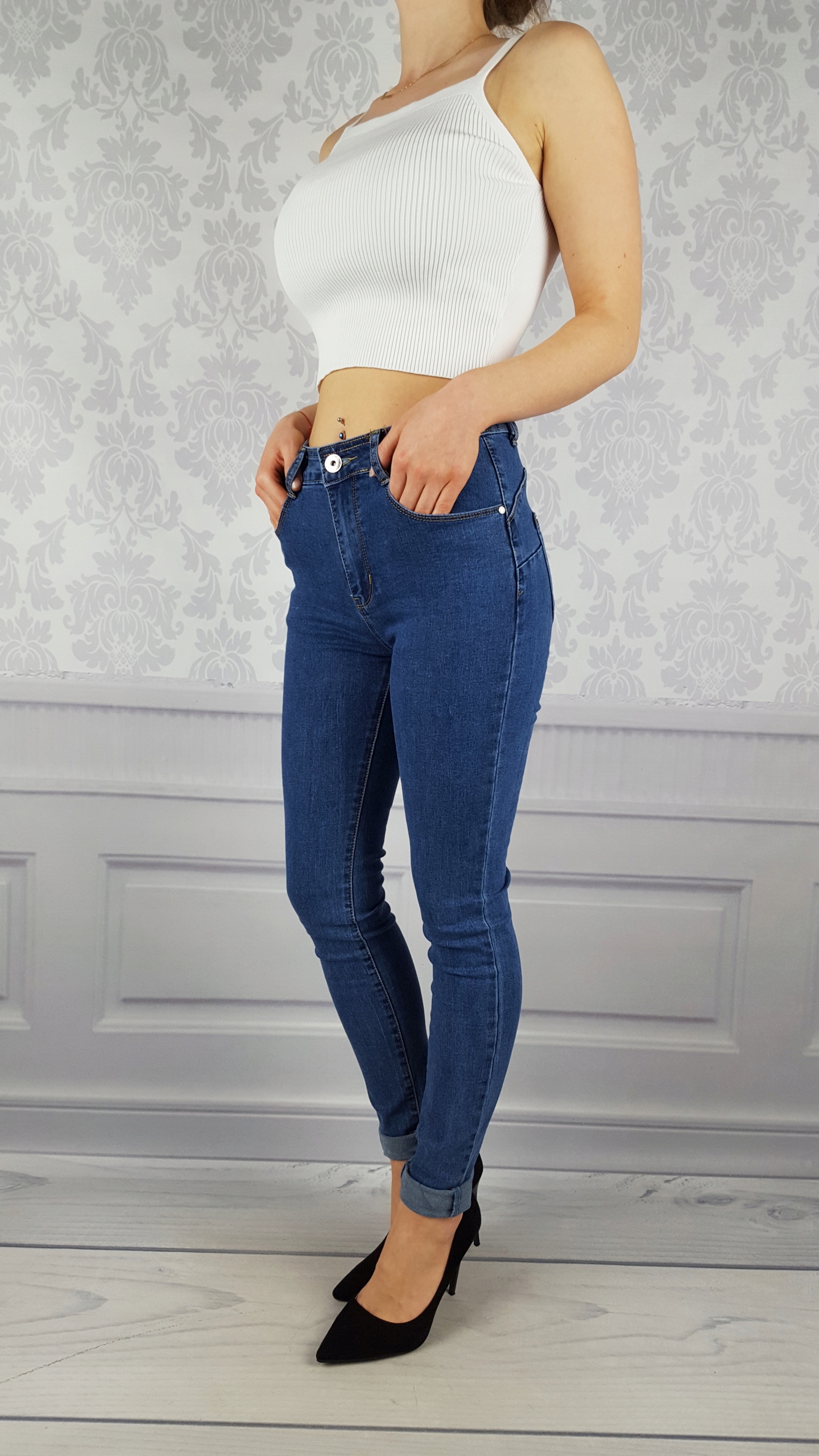 Отличные джинсовые брюки Indianapolis, высокая талия. б > Отлично подходят для спортивной обуви, но также идеальны в сочетании с обувью на высоком каблуке, поскольку благодаря своей универсальности подходят практически к любому стилю. Гибкий материал подчеркивает женскую фигуру. Брюки приталенные и тянутся. Подчеркните свои женственные формы! Сделайте свой повседневный образ уникальным. Брюки имеют карманы с обеих сторон.