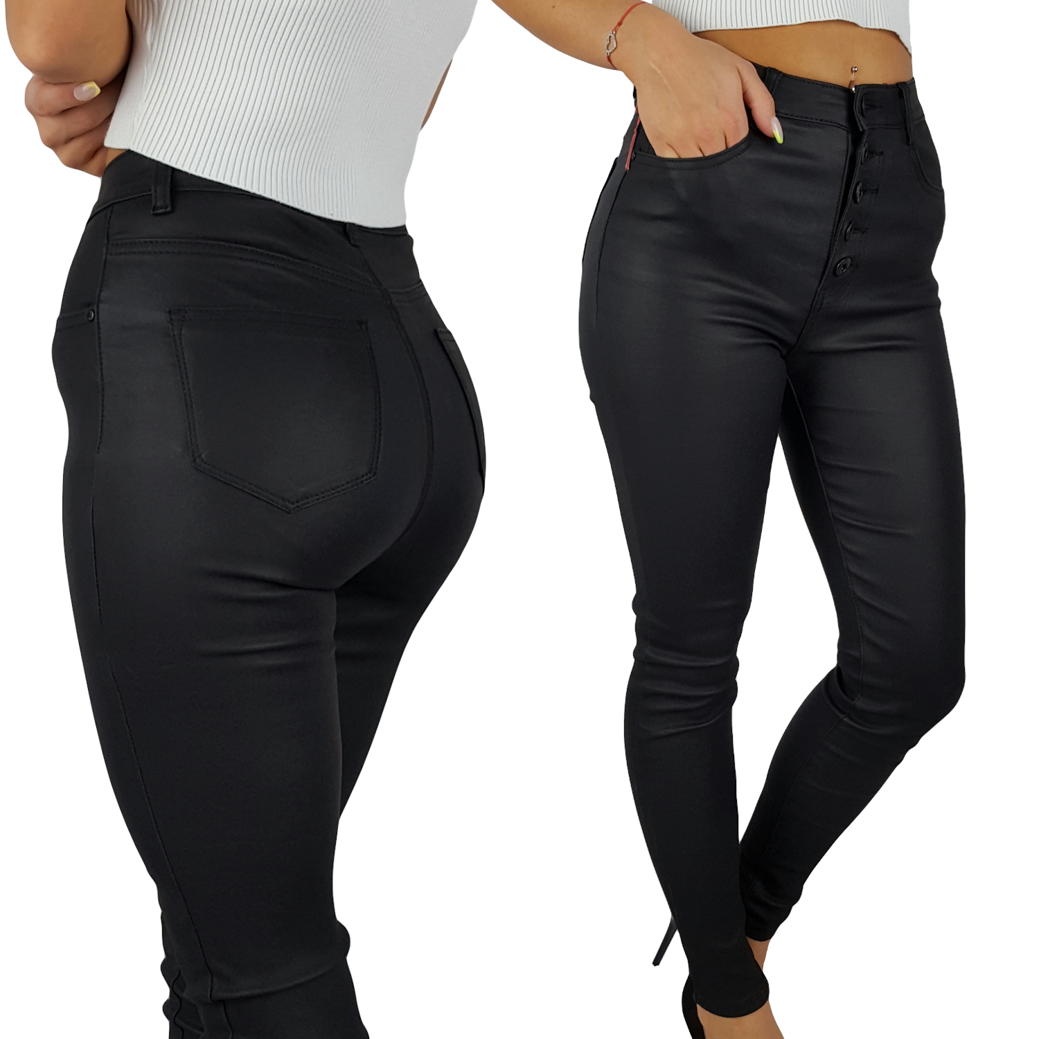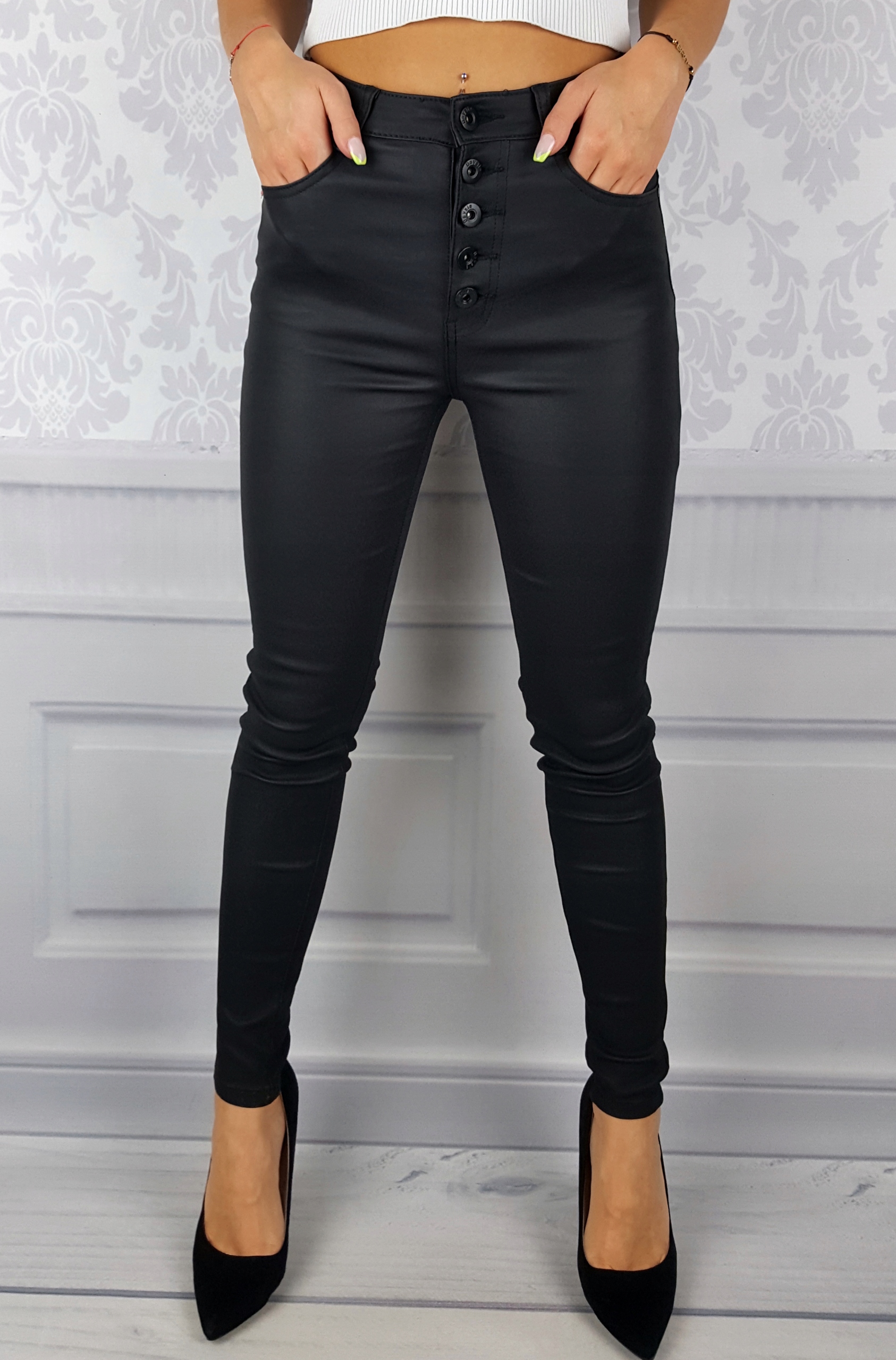 Отличные классические брюки, вощеные, матовые, имитирующие кожу, с завышенной талией. б> Отлично подходят для спортивной обуви, но они также идеальны в сочетании с обувью на высоком каблуке, поскольку благодаря своей универсальности подходят практически к любому стилю. Гибкий материал подчеркивает женскую фигуру. Брюки приталенные и тянутся. Подчеркните свои женственные формы! Сделайте свой повседневный образ уникальным. Брюки имеют карманы с обеих сторон.