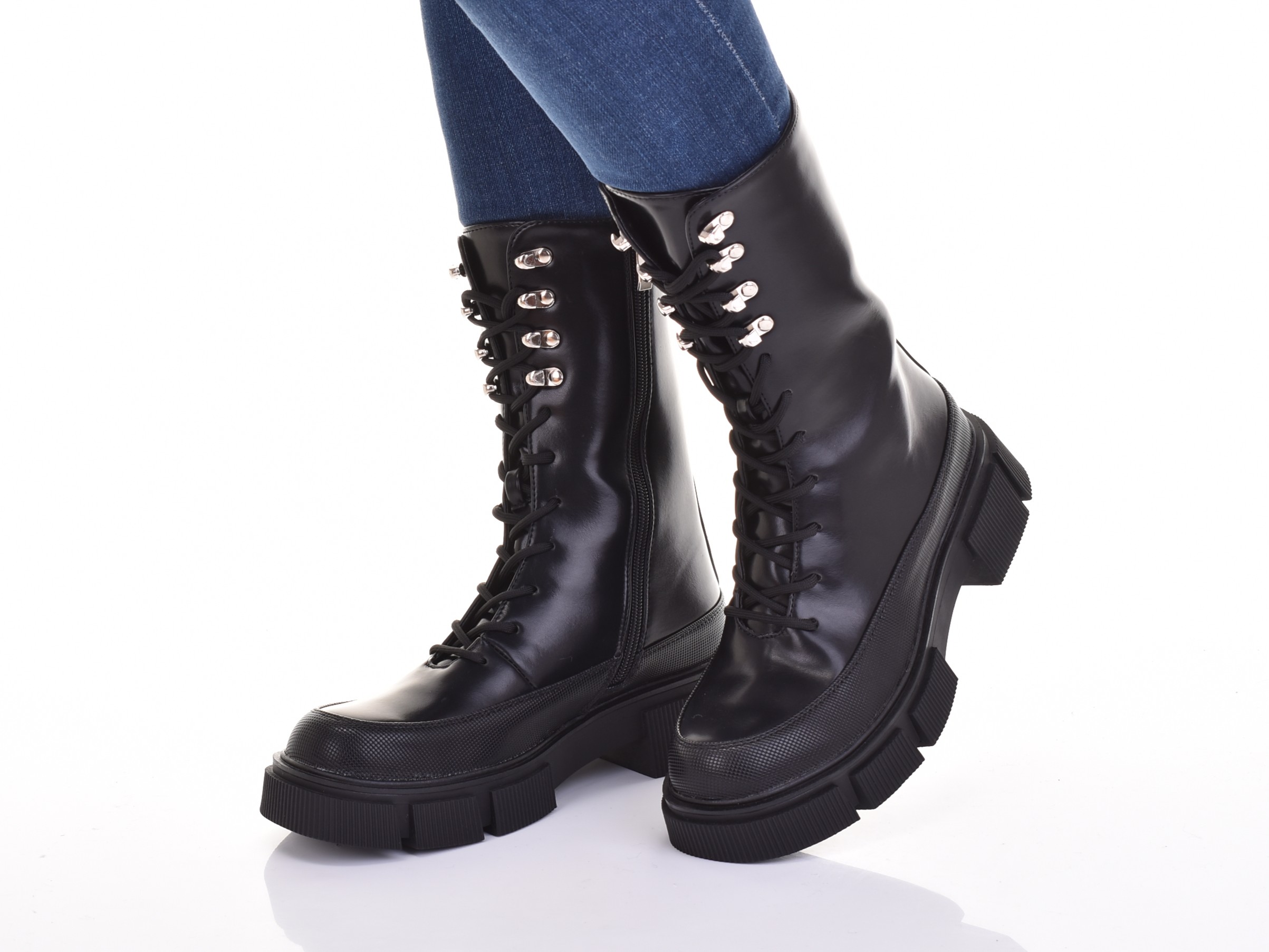 Женские ботинки на платформе сапоги сапоги черная кожаная изоляция