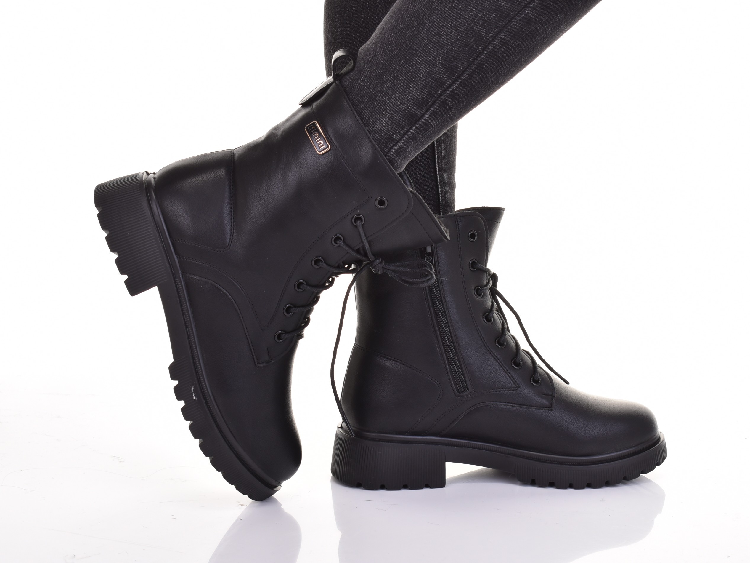 БОТИНКИ-ТРАП ЖЕНСКИЕ УТЕПЛЕННЫЕ МЕХОВЫМИ КОЖАНЫМИ ТРАПЕРАМИ, ЧЕРНЫЕ