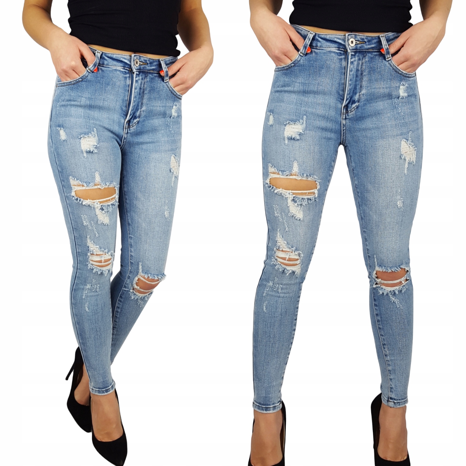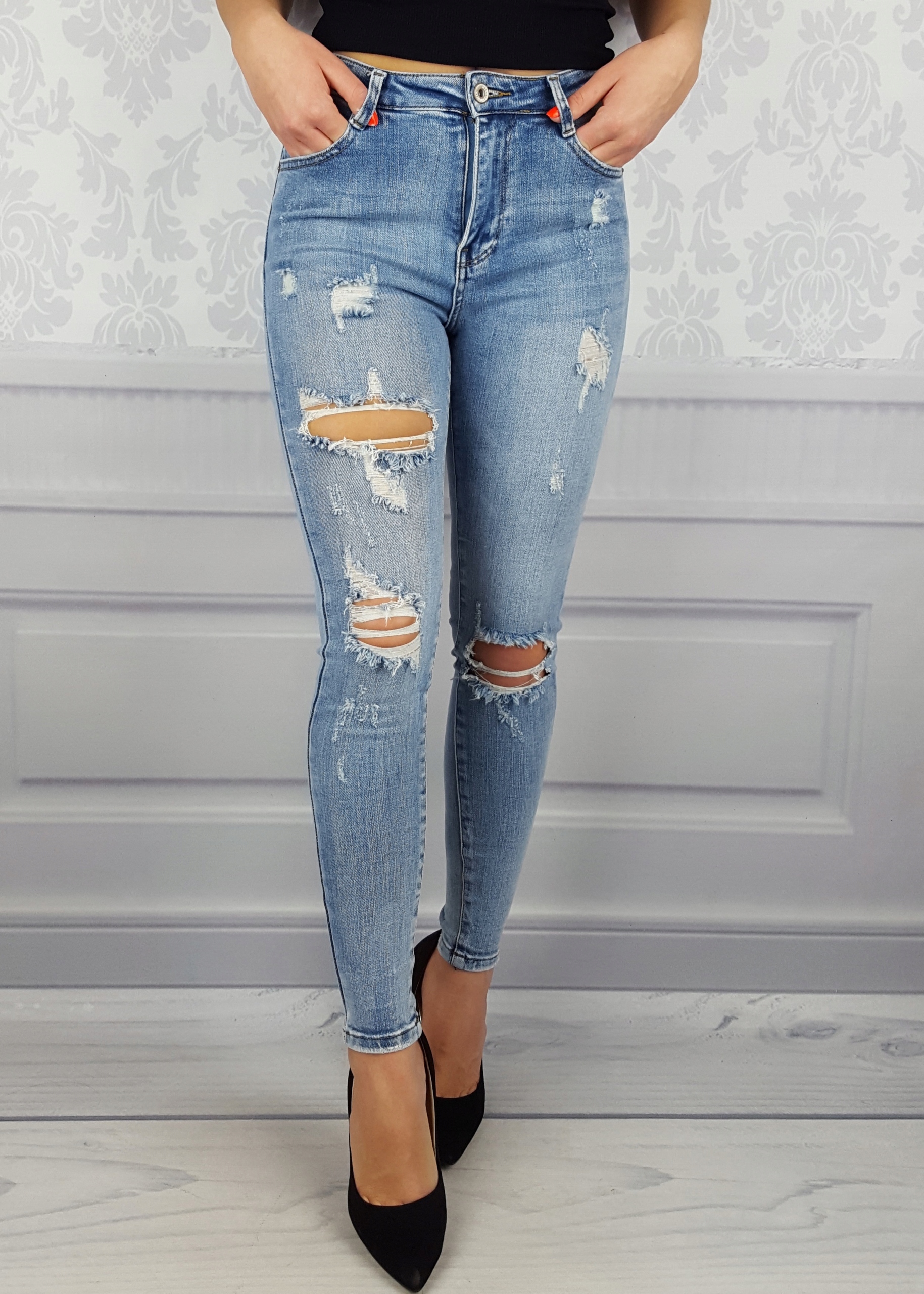 Канзас джинсовые брюки с потертостями и дырками, завышенной талией Отлично подходят для спортивной обуви, но также идеальны в сочетании с обувью на высоком каблуке, благодаря своей универсальности подходят практически к любому стилю. Гибкий материал подчеркивает женскую фигуру. Брюки приталенные и тянутся. Подчеркните свои женственные формы! Сделайте свой повседневный образ уникальным. Брюки имеют карманы с обеих сторон.