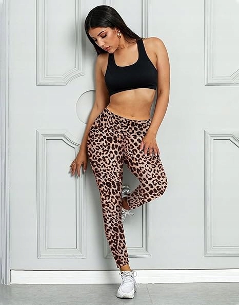 «Женские леггинсы с высокой талией — мягкие брюки с принтом для контроля живота, L»