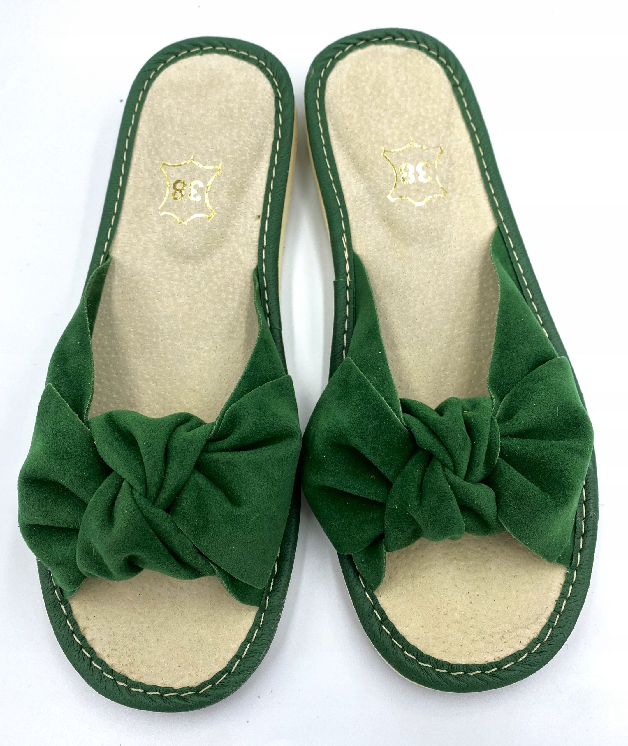 Женские кожаные тапочки дома -изготовленные скидки с зеленым луком. 36