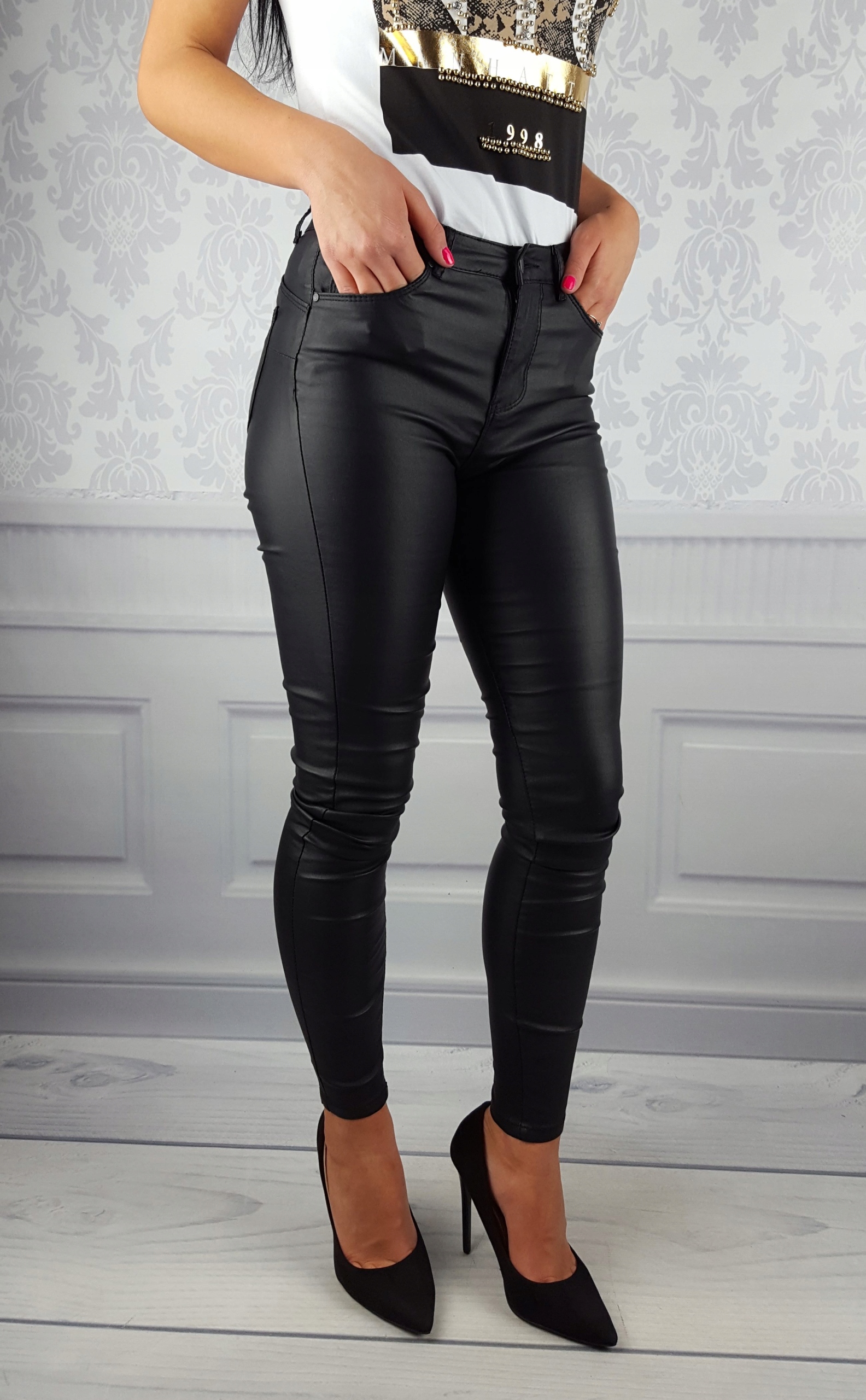 Отличные брюки, имитирующие кожу по цвету, вощеные, с завышенной талией. Отлично подходят для спортивной обуви, но также идеальны в сочетании с обувью на высоком каблуке, благодаря своей универсальности подходят практически к любому стилю. Гибкий материал подчеркивает женскую фигуру. Брюки приталенные и тянутся. Подчеркните свои женственные формы! Сделайте свой повседневный образ уникальным. Брюки имеют карманы с обеих сторон.