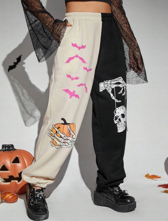 СПОРТИВНЫЕ БРЮКИ ДЛЯ ХЭЛЛОУИНА ОСЕННЯЯ С ПРИНТОМ ЧЕРЕПА НА ЭЛАСТИКЕ