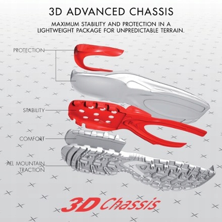 - 3D Advanced Chassis™, расположенное между подошвой и межподошвой, низкопрофильное шасси обеспечивает максимальную безопасность, контроль движения, управление энергопотреблением.