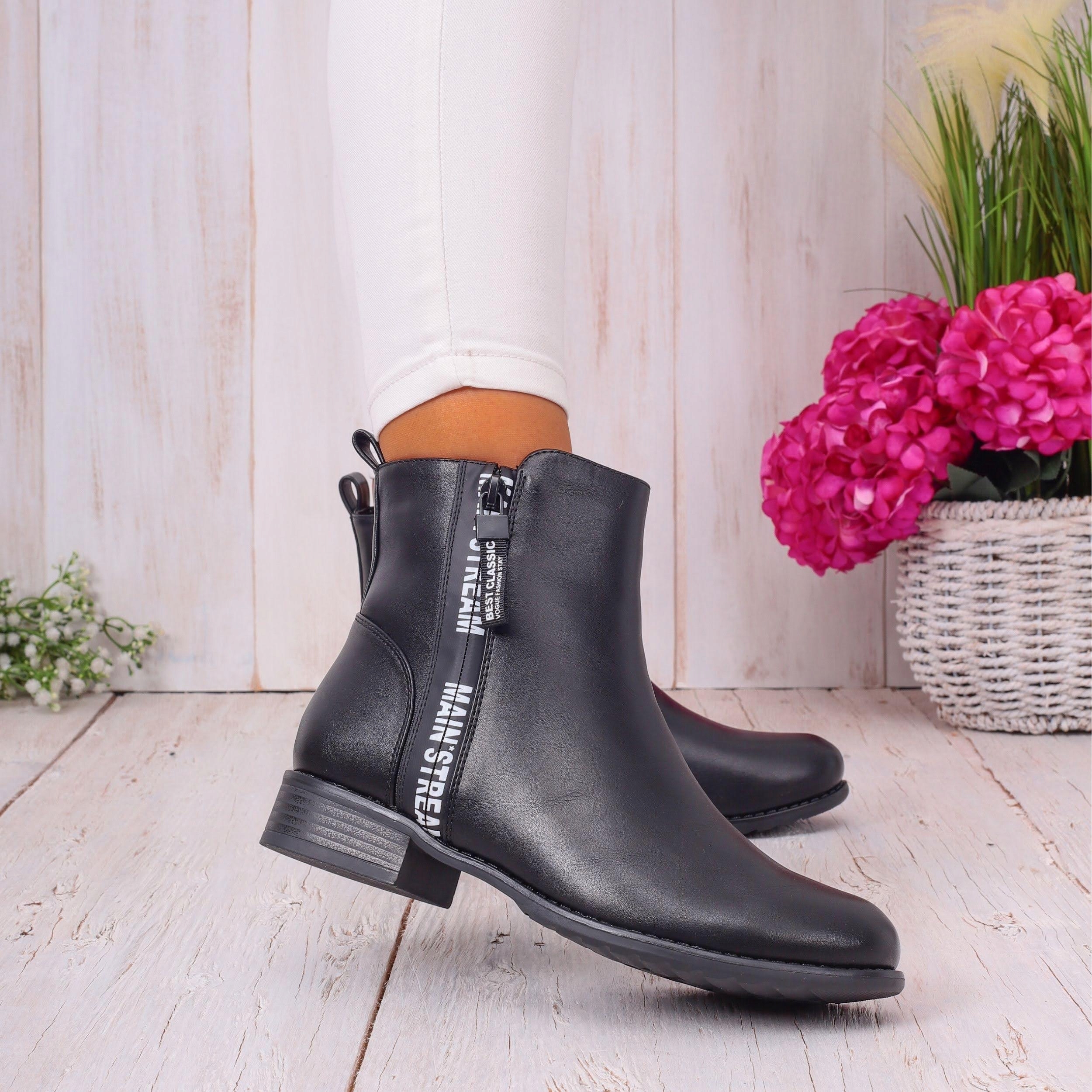 Ботильоны женские черного цвета. Они имеют застежку-молнию, что облегчает их надевание. Устойчивая толстая подошва хорошо амортизирует ногу. Изготовлен из материалов хорошего качества. Их простой дизайн позволяет им сочетаться со многими стилями.
