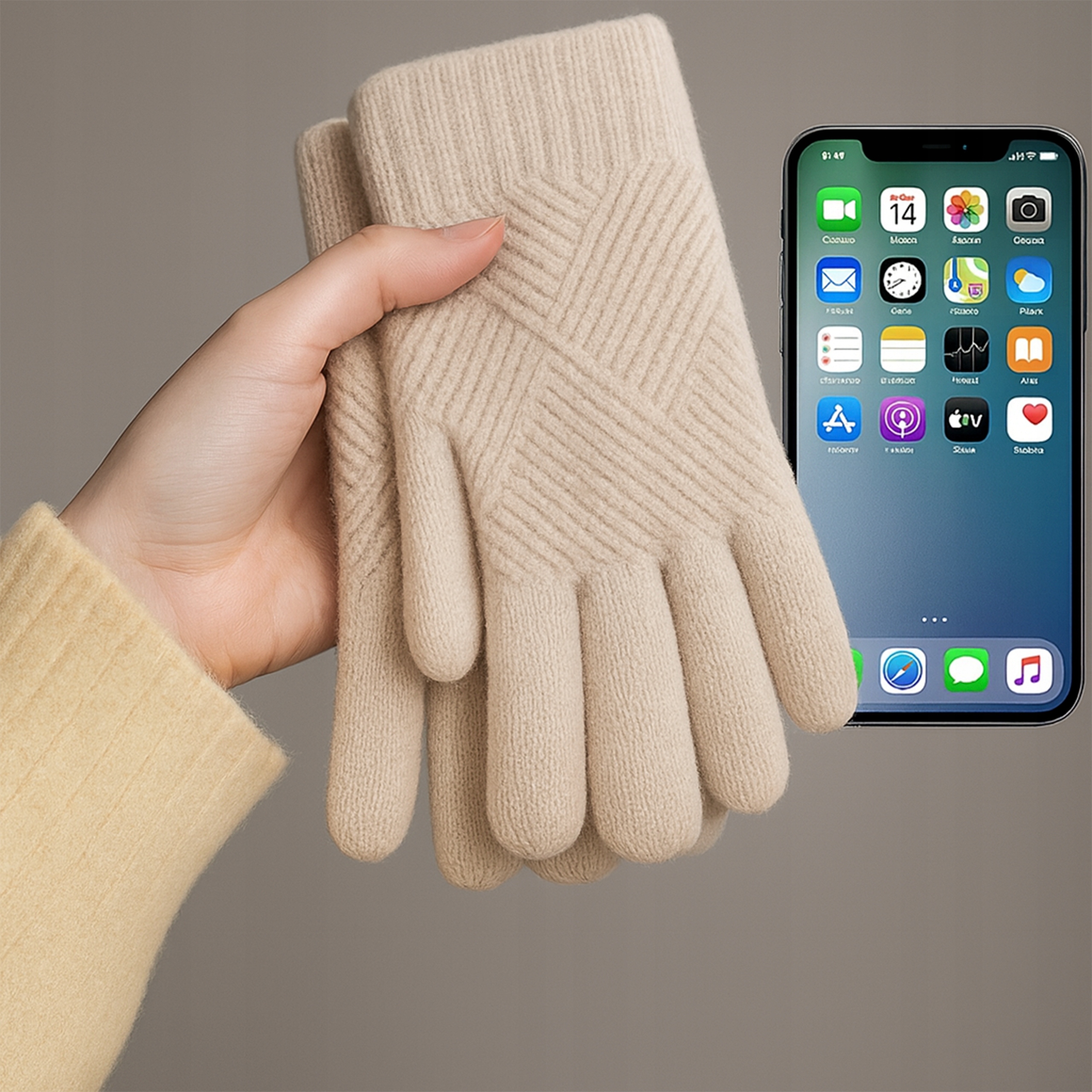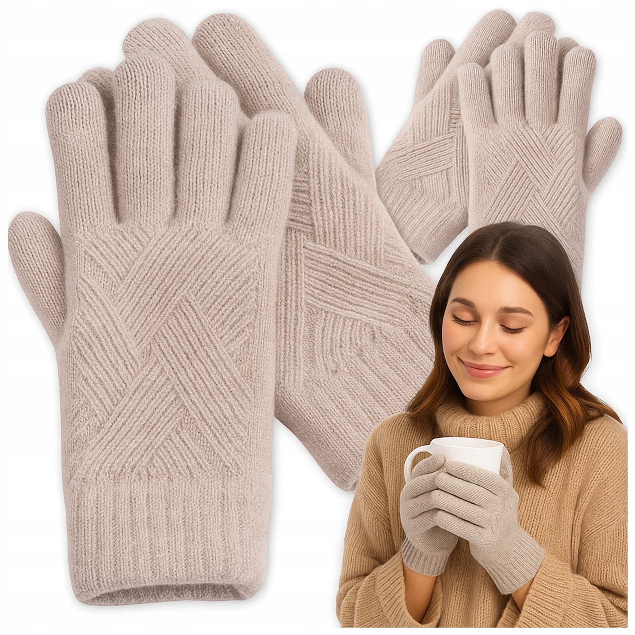ПЕРЧАТКИ ЖЕНСКИЕ ЗИМНИЕ СЕНСОРНЫЕ, ТЕПЛЫЕ, УТЕПЛЕННЫЕ ДЛЯ ТЕЛЕФОНА, БЕЖЕВЫЕ