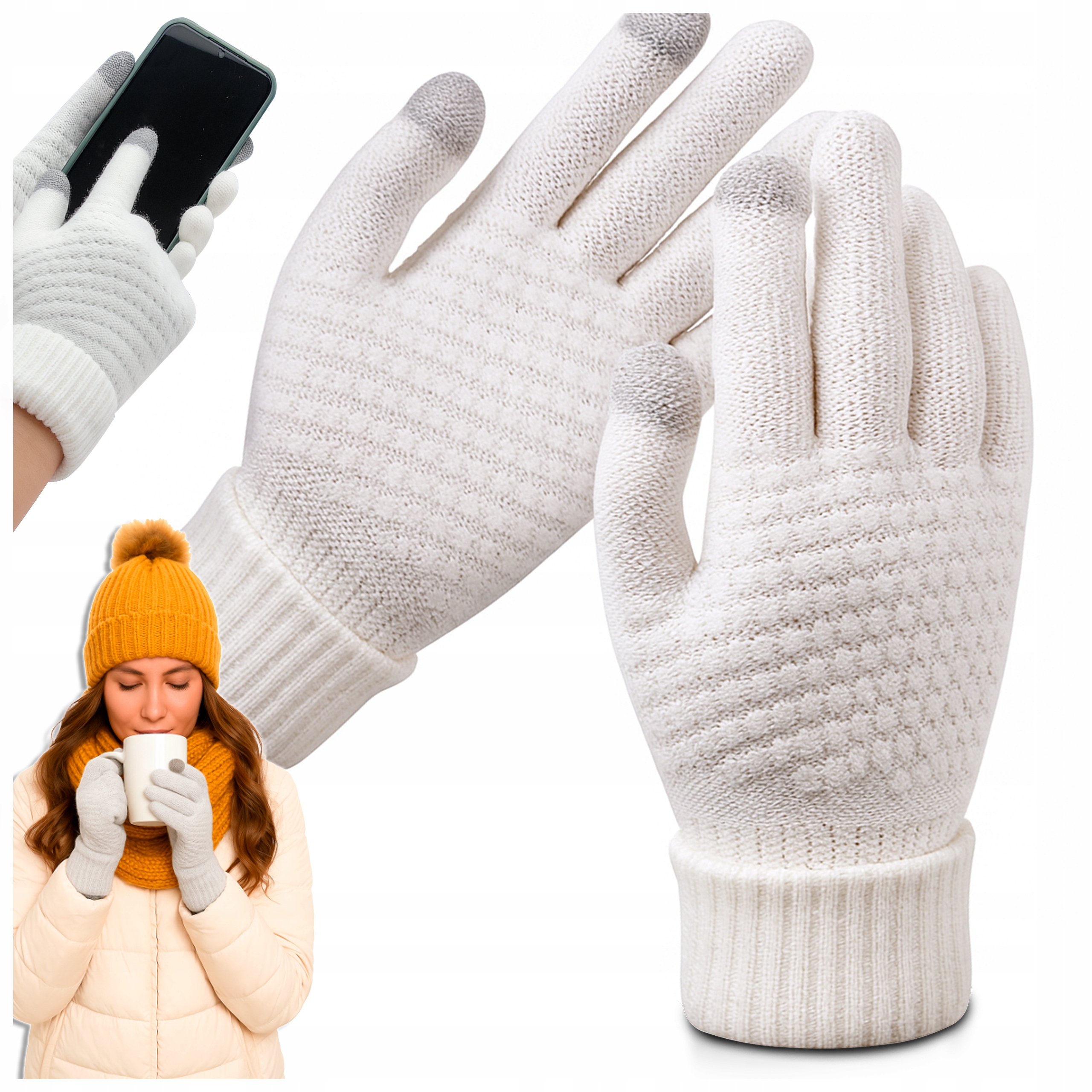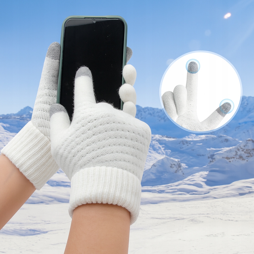 ПЕРЧАТКИ ЖЕНСКИЕ ЗИМНИЕ СЕНСОРНЫЕ, ТЕПЛЫЕ, ИЗОЛИРОВАННЫЕ ДЛЯ ТЕЛЕФОНА, БЕЛЫЕ