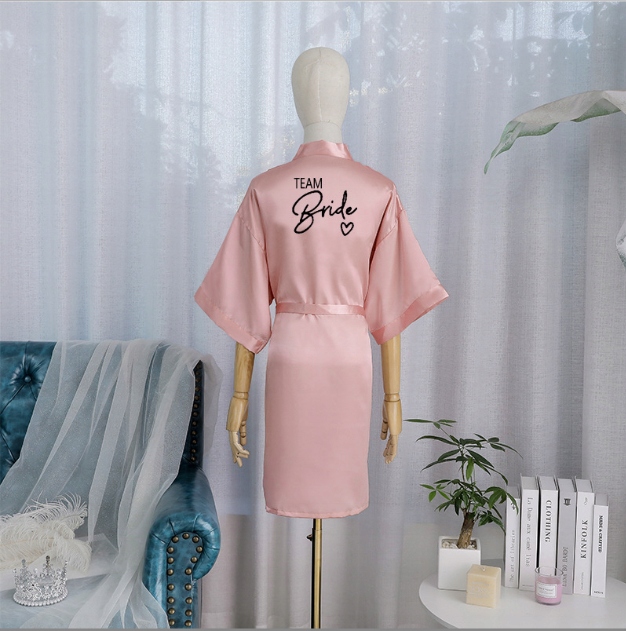 ЖІНОЧИЙ АТЛАСНИЙ ХАЛАТ L PINK TEAM BRIDE BACHELOR PARTY