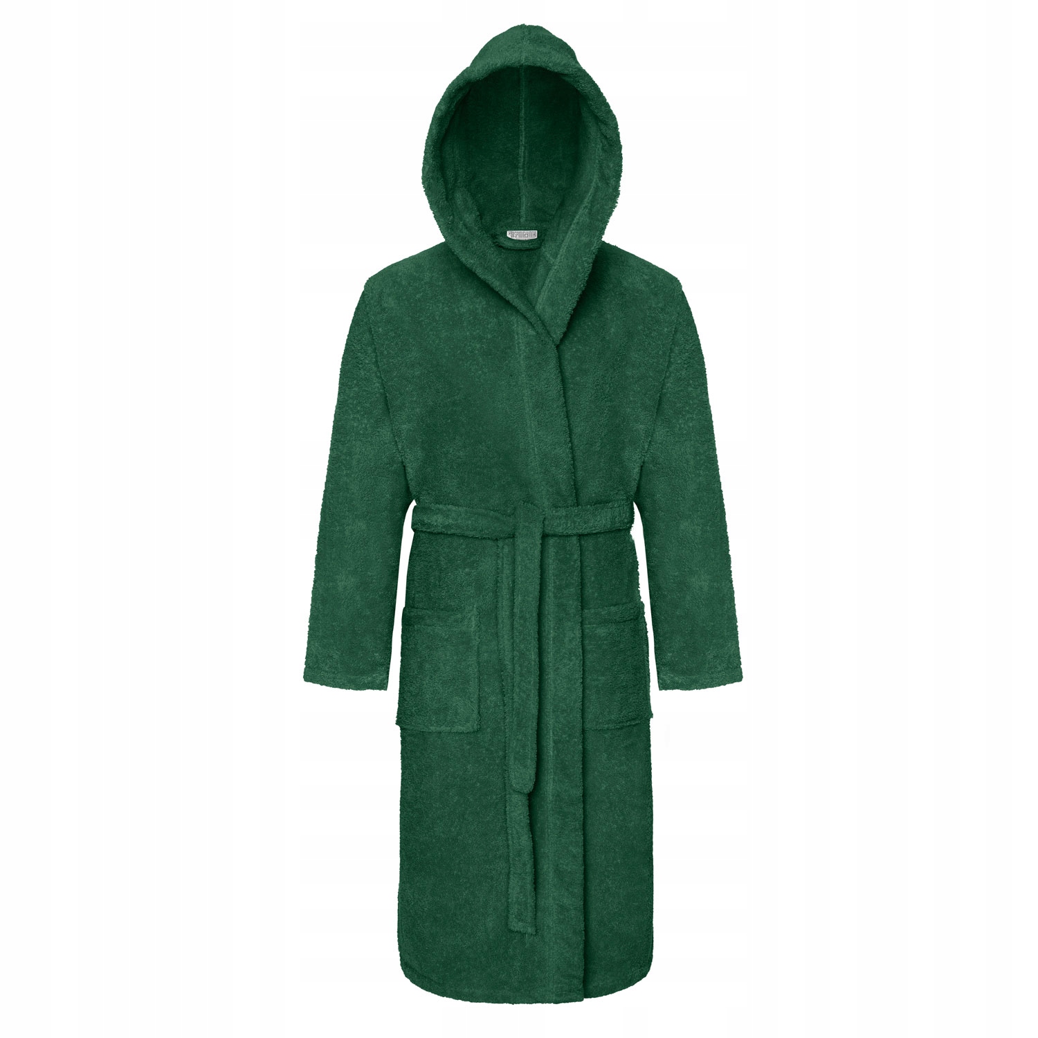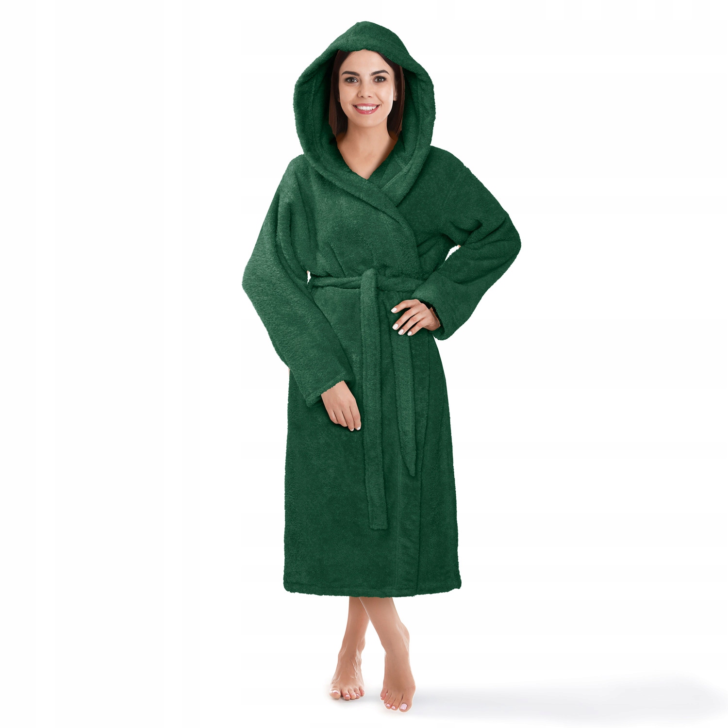 ХЛОПКОВЫЙ ХАЛАТ ЖЕНСКИЙ С КАПЮШОНОМ, ЗЕЛЕНЫЙ, XS