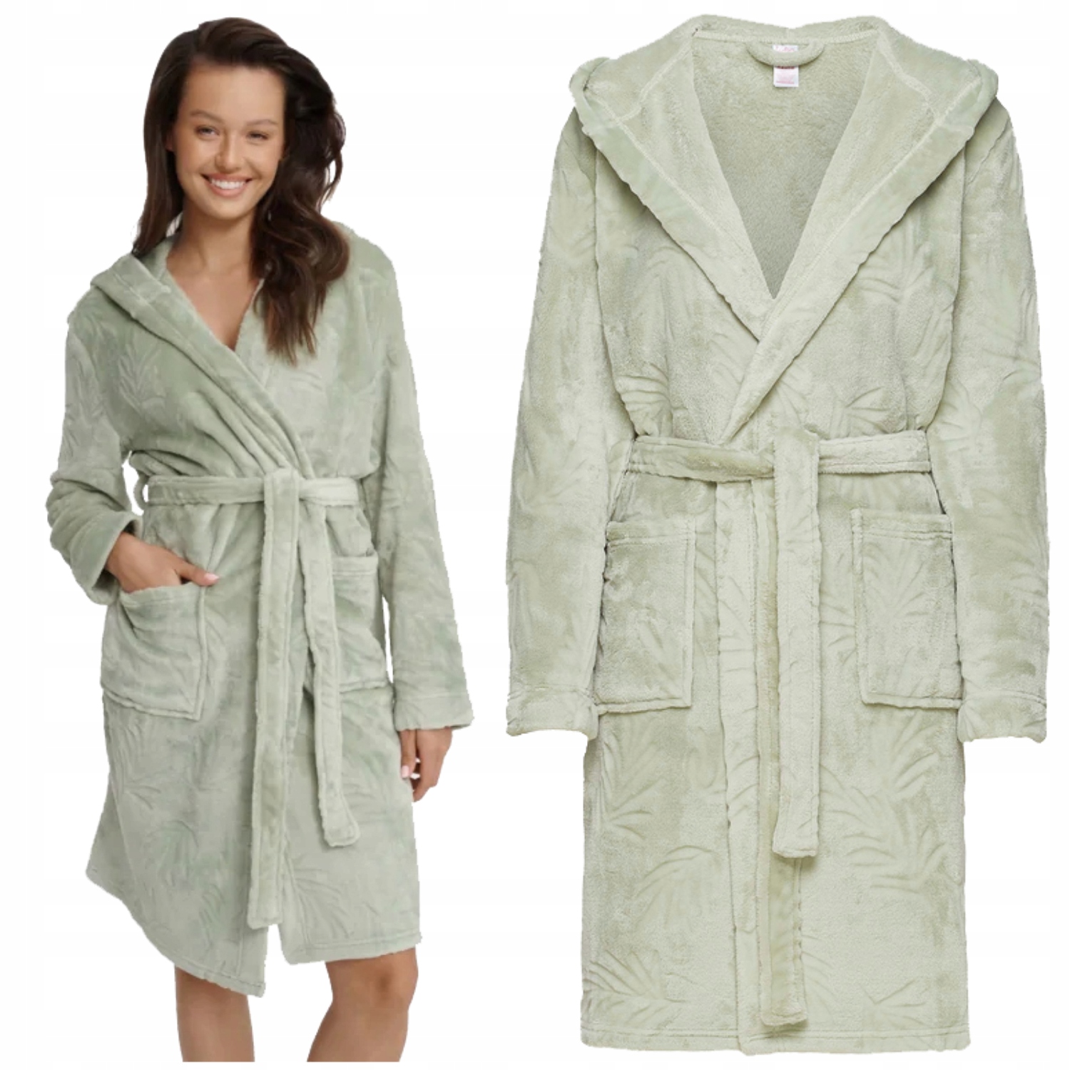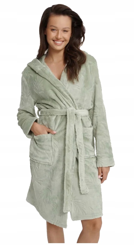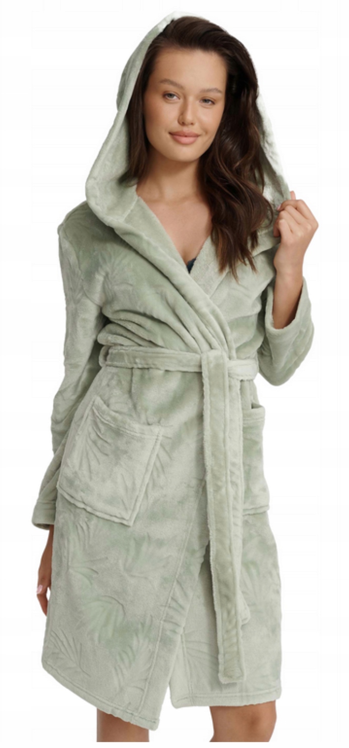 Приятный на ощупь плюшевый женский халат HENDERSON элегантного мятного цвета.