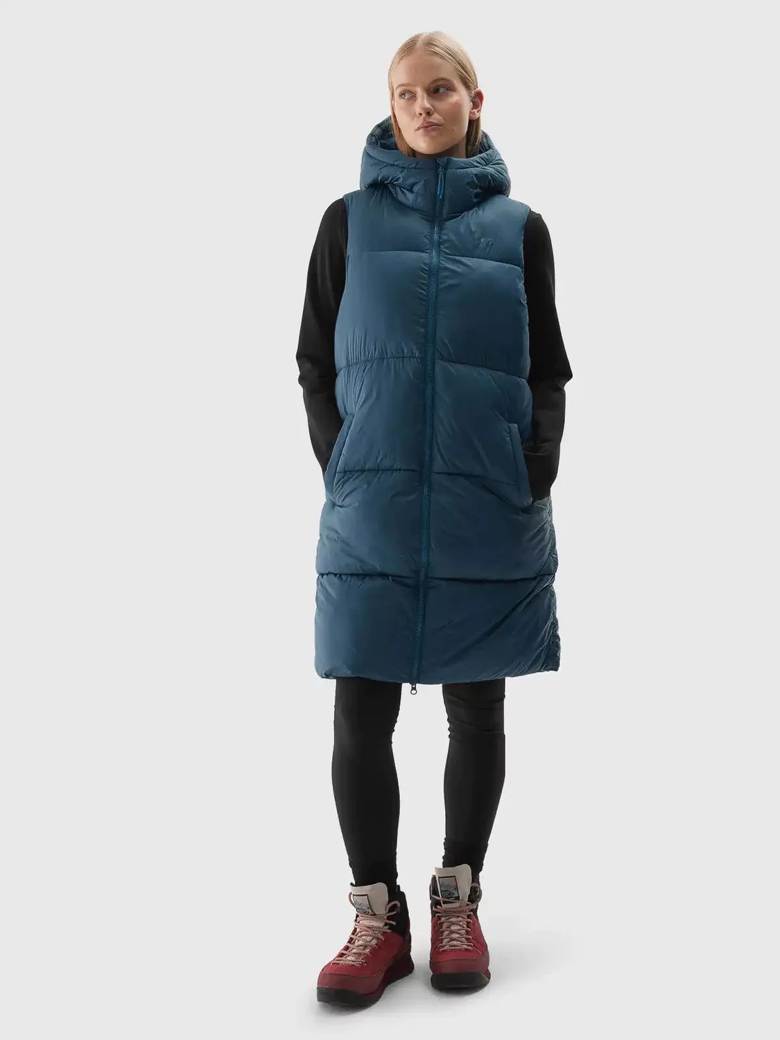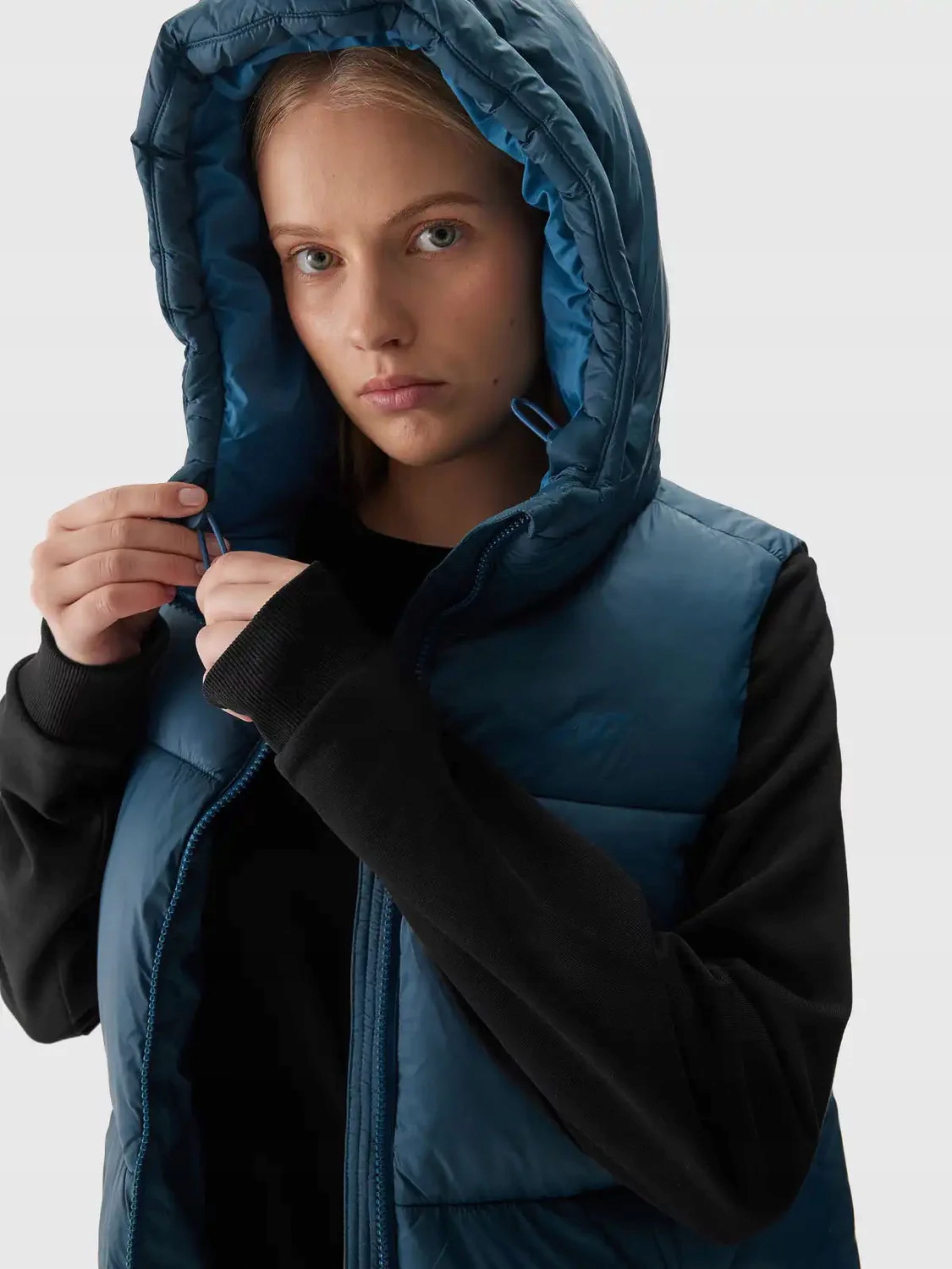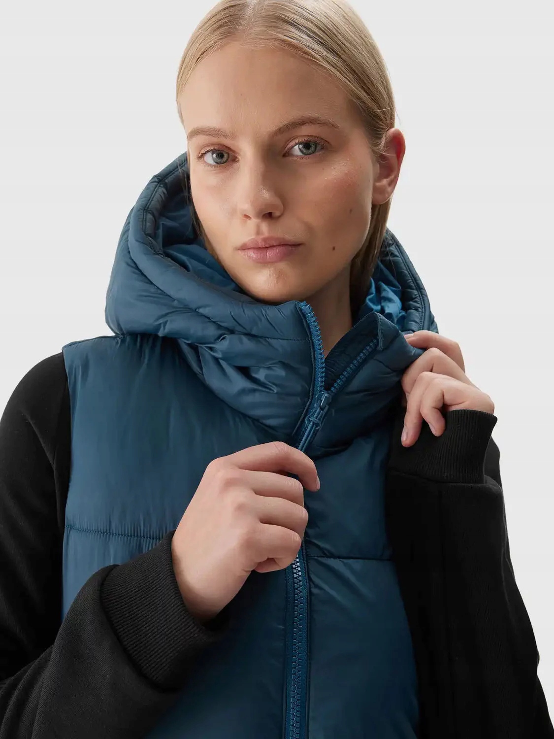 Женский жилет от 4F является идеальным выбором для прохладных дней, предлагая оптимальный тепловой комфорт благодаря средней степени тепла. Интегрированный 2D -регулировочный капюшон обеспечивает дополнительную защиту от ветра и дождя, что подтверждается гидрофобной пропиткой внешнего слоя - материал не поглощает воду, благодаря тому, что вы остаетесь сухим. Простая длина среза и колена обеспечивает элегантный вид, а стеганая структура добавляет стиль. Практические боковые карманы позволяют удобно хранить мелкие предметы, а молния по всей длине облегчает надевание и снятие жилета.