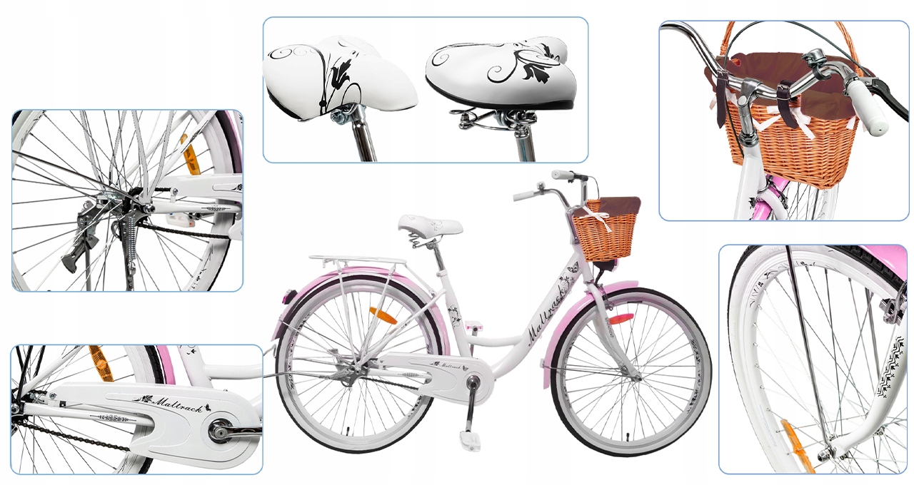 КОРЗИНА | ПЕРЕДНИЙ ФОНАРЬ | БАГАЖНИК | ОТРАЖАЮЩИЕ СРЕДСТВА | Крылья | НОЖКА | КОЛОКОЛЬЧИК | НЕСКОЛЬЗЯЩИЕ РУЧКИ | КРЫШКА ЦЕПИ | КОМФОРТНЫЙ SIO DEŁKO | ПЕДАЛИ ПЛАТФОРМЫ |