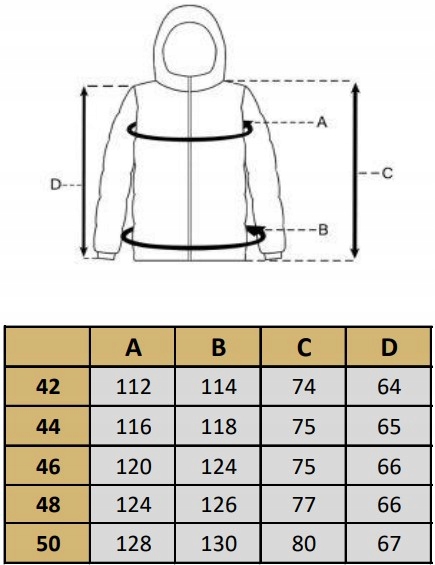 Мы измеряем продукты плоские, снаружи, пуговица (блокировка). Чтобы выбрать наиболее подходящий размер, измерьте аналогичную одежду из вашего гардероба и сравните его размеры с таблицей размера стола. Размеры, приведенные в таблице, могут отличаться от фактических размеров продукта +/- 2 см. Модель на рисунке имеет высоту 164 см и носит размер 42