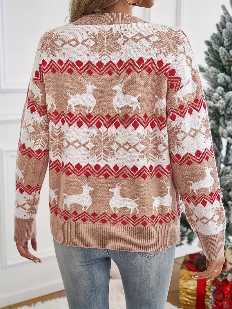 Благодаря элегантной расцветке и универсальному крою свитер идеально садится на любую фигуру и подчеркивает ваш рождественский стиль.