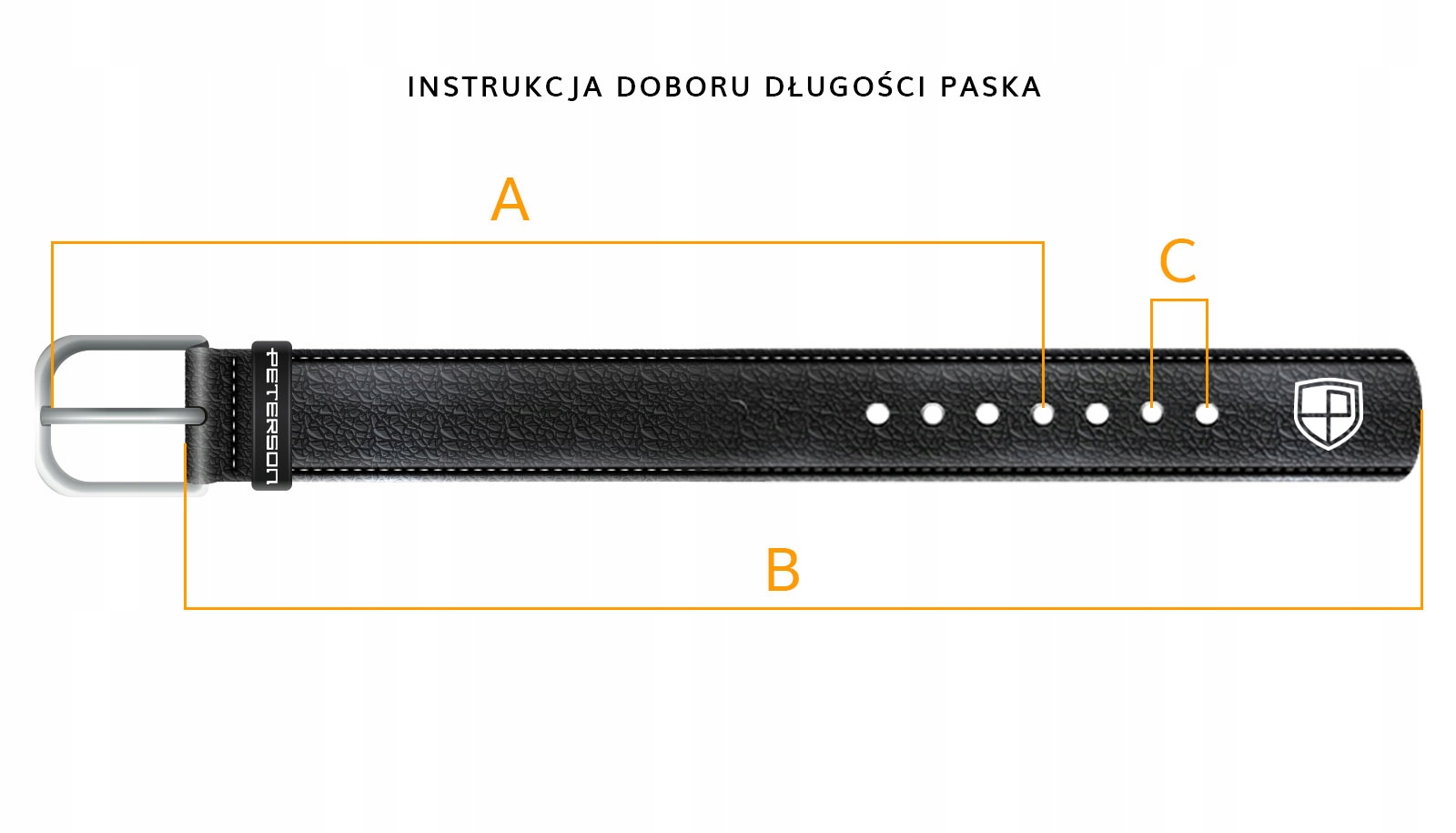 B — длина ремня без пряжки (это значение вы выбираете на Allegro рядом с кнопкой покупки)