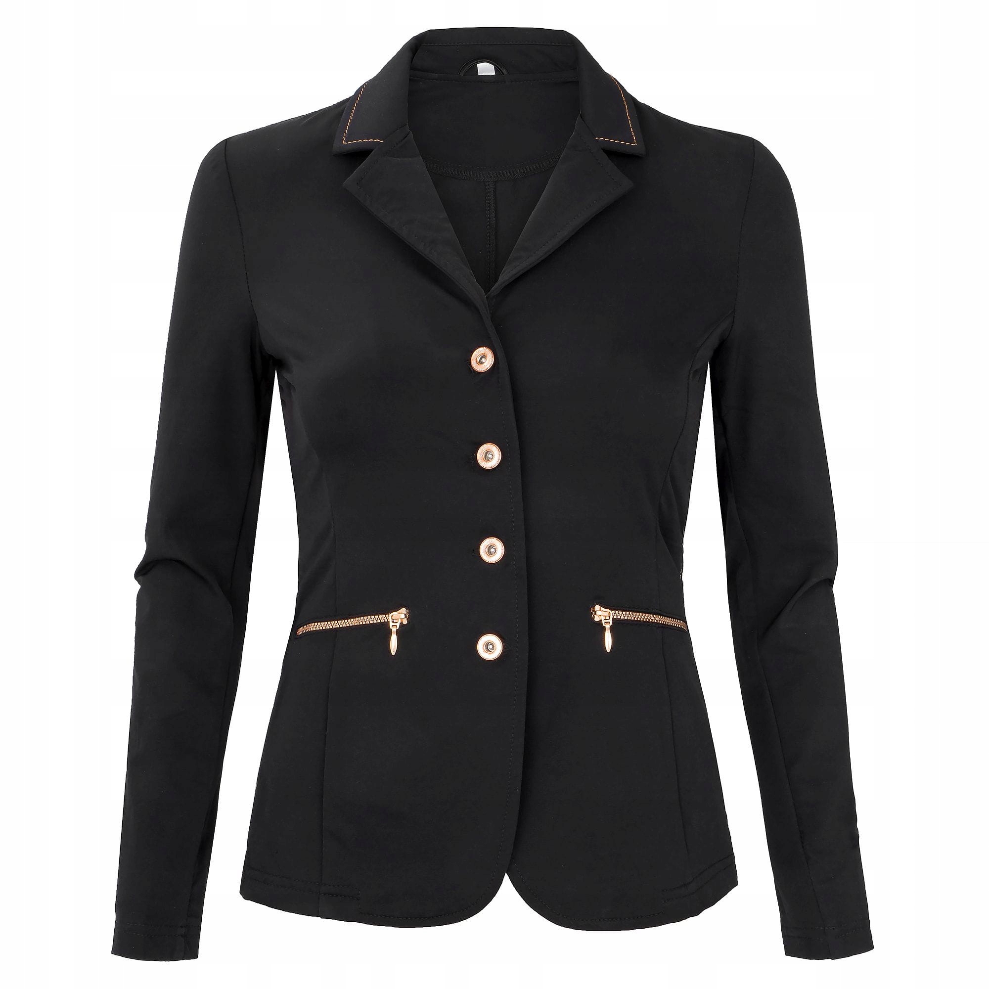 Элегантный фрак, который привлечет внимание судей и зрителей во время соревнований. Он изготовлен из эластичного материала, который идеально садится по фигуре и подчеркивает талию. Красивые блестящие пуговицы из розового золота с блестящими частицами придают ему очарования. Дополнительные украшения включают молнии и строчку в цвет пуговиц. Фрак застегивается на молнию и пуговицы, имеет два передних кармана на молнии. Он доступен в двух цветовых вариантах, которые прекрасно сочетаются с розовым золотом: темно-синем и черном.