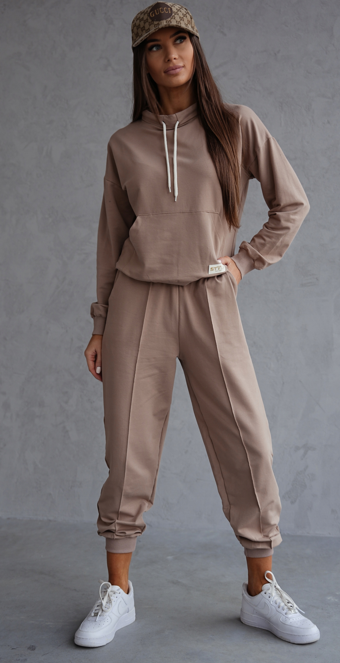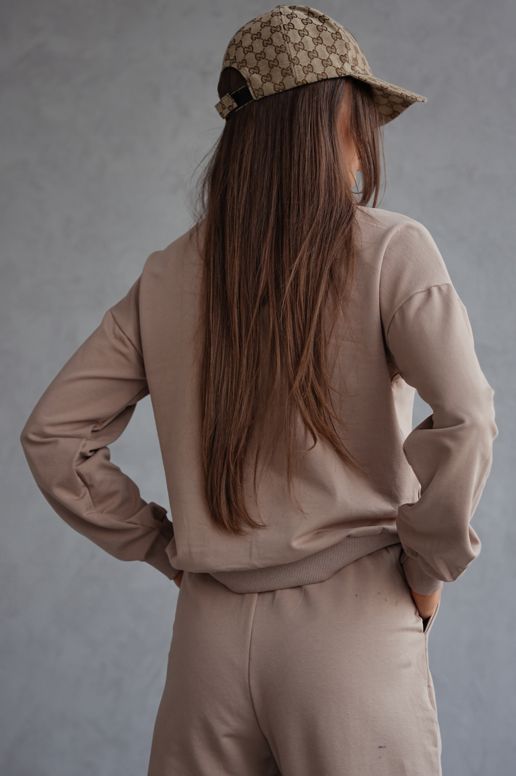 Женский спортивный костюм, комплект спортивного спортивного костюма из хлопка, брюки со свитшотом CAPPUCCINO L