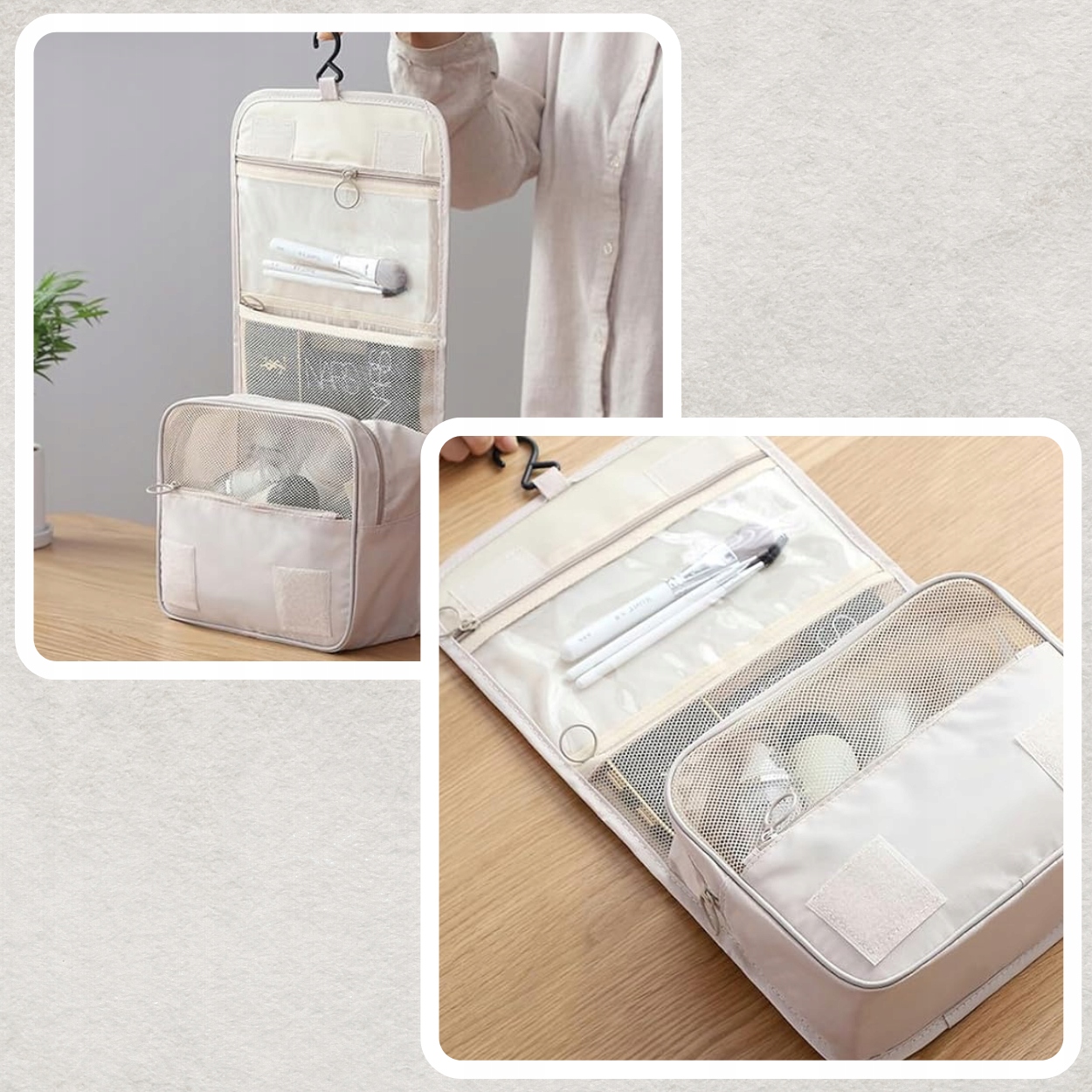Путешествие Hanging косметолог - это идеальное решение для людей, которые ищут практического и просторного организатора для косметики, как во время , так и для повседневного использования дома. Благодаря инновационному дизайну, после развертывания он превращается в удобный и прозрачный организатор, облегчая доступ ко всем необходимым продуктам.