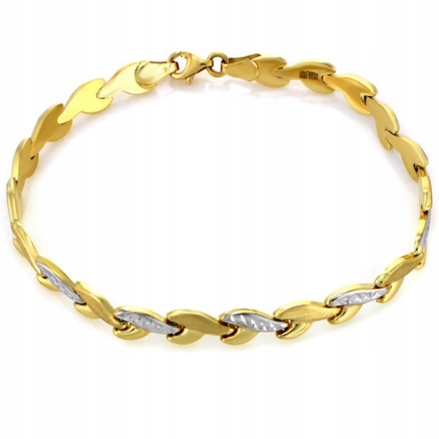 Браслет с элементами из желтого и белого золота 585 пробы подчеркнет любой наряд: вечерний, рабочий и торжественную дружескую встречу. Алмазная поверхность некоторых элементов заставляет браслет красиво преломлять световые лучи, ненавязчиво переливаясь в нем. Благодаря сочетанию двух цветов золота: желтого и белого, браслет приобретает дополнительный шарм и блеск.