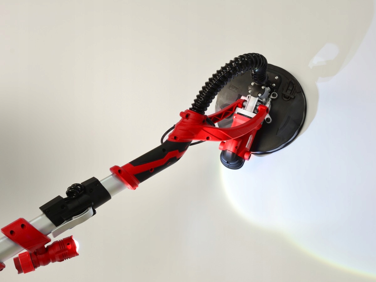 Телескопическая стрела шлифовальной машины позволяет выполнять работы без необходимости использования лестницы или строительных лесов. Также измельчитель имеет систему пылеудаления, совместимую с промышленными пылесосами, что позволяет поддерживать порядок на рабочем месте. Кроме того, Светодиодное освещение на 360° позволяет легко освещать рабочую поверхность, что значительно повышает комфорт и качество работы.