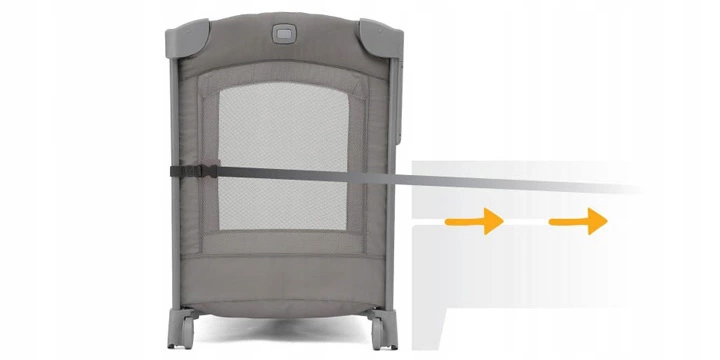 Детская кроватка имеет систему, которая не позволяет ей отходить от кровати родителей. Ремешок и фиксирующий зажим обеспечивают безопасность.