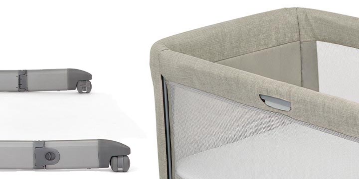 Боковая стена кроватки может быть оставлена одной рукой, поэтому вы получите доступ к своему ребенку через мгновение. Стена изготовлена из сетки, предотвращая потерю зрительного контакта и обеспечивая циркуляцию воздуха