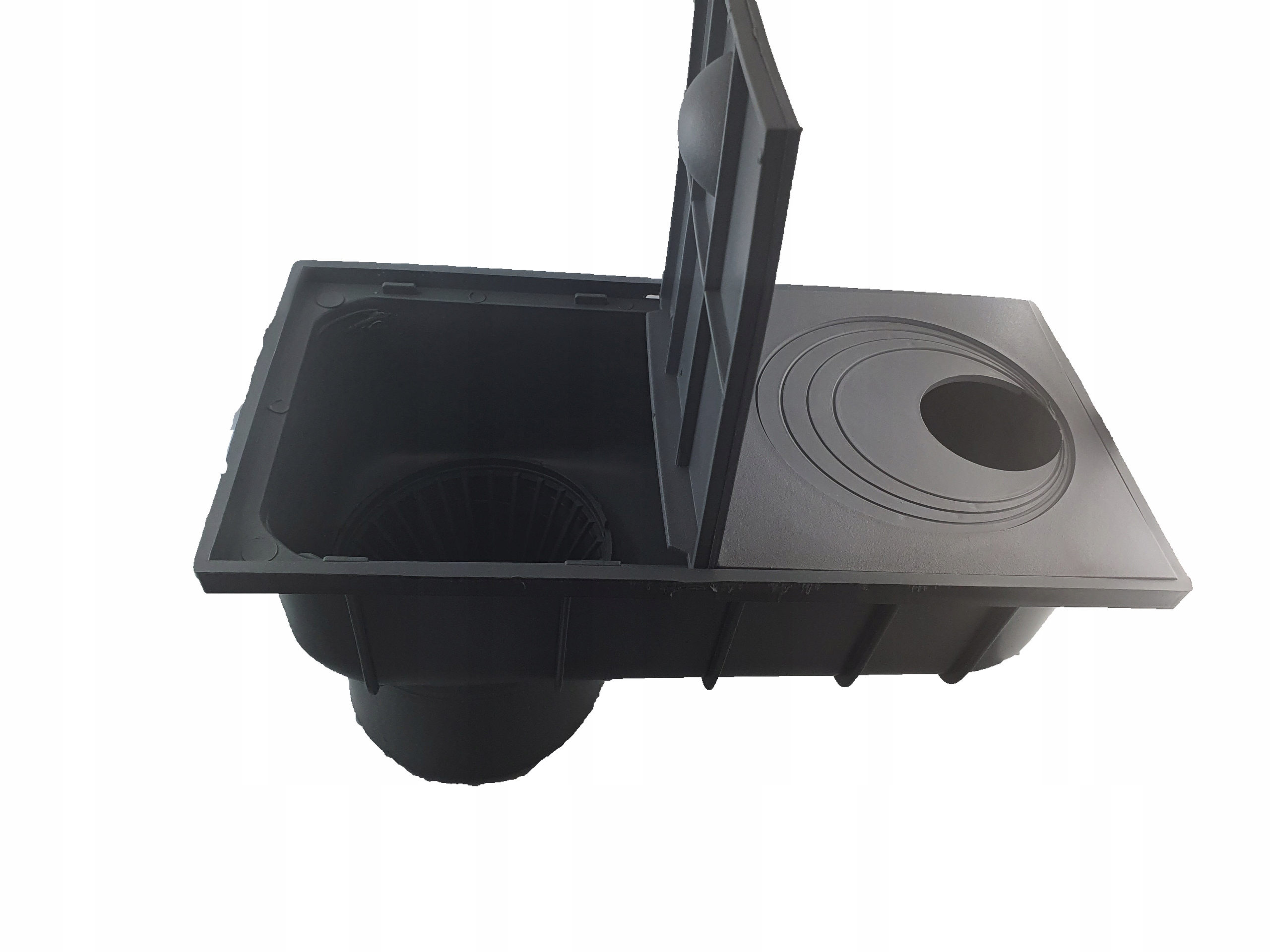 Специальная корзина улавливает стекающие с дождевой водой примеси, прекрасно предотвращая засорение канализационной системы.